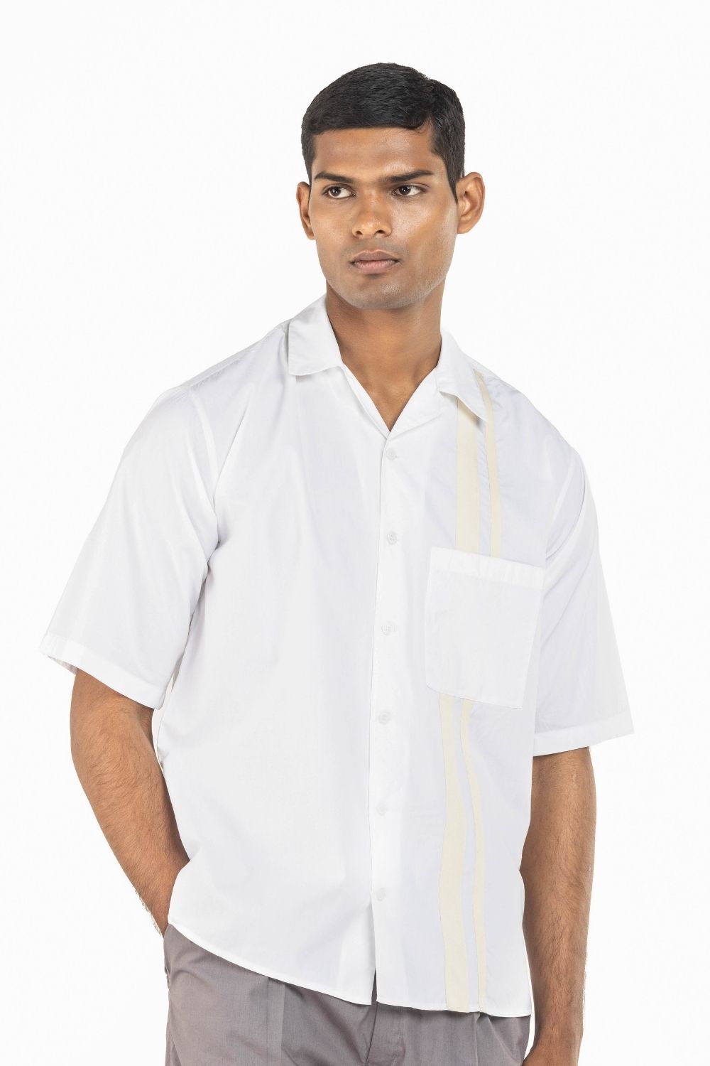 Co-ord Set includes White Twill Tape Shirt & Front Pleat Pant