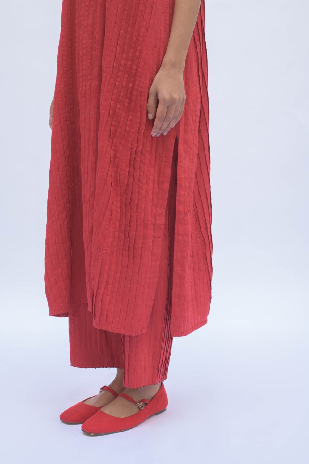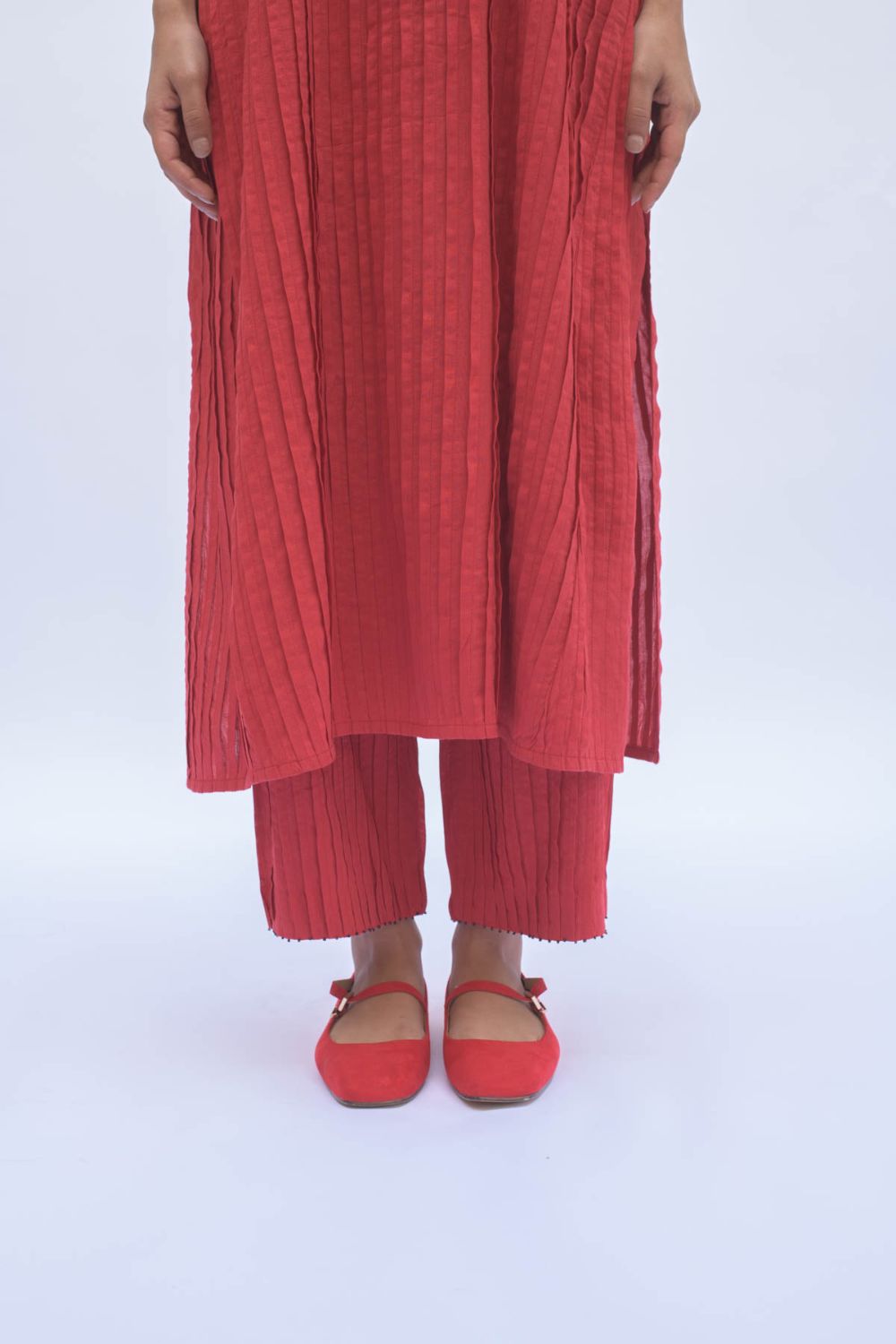 This pintuck kurta and pant set is designed for ultimate comfort and style. Made from soft, breathable cotton fabric, it ensures a relaxed and breathable fit, perfect for casual wear.