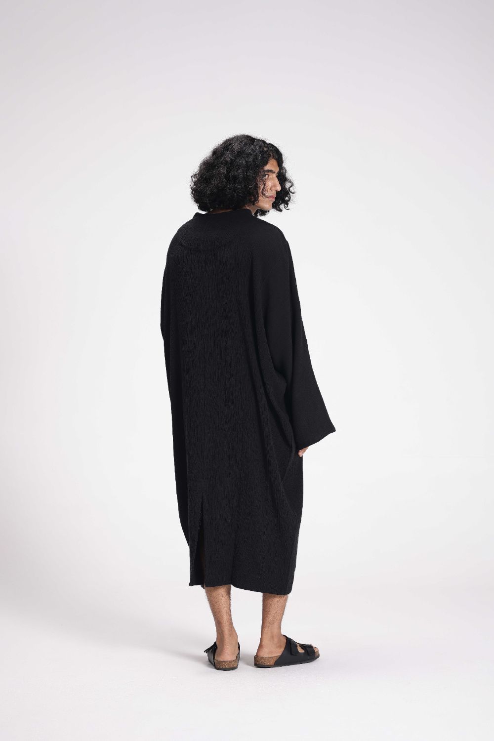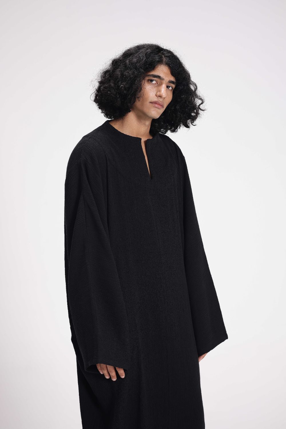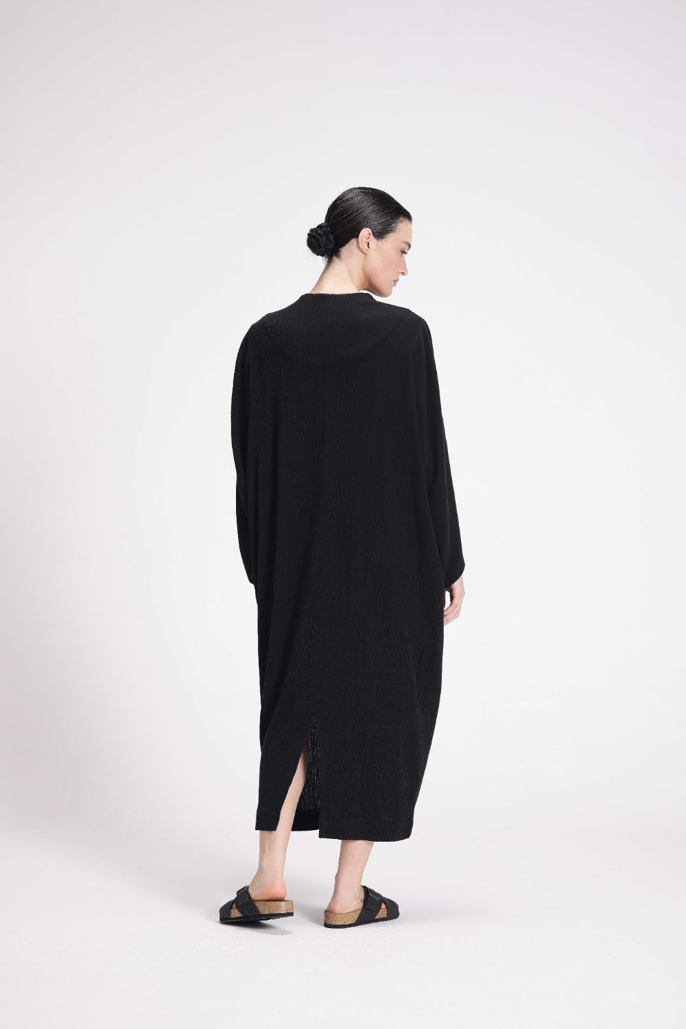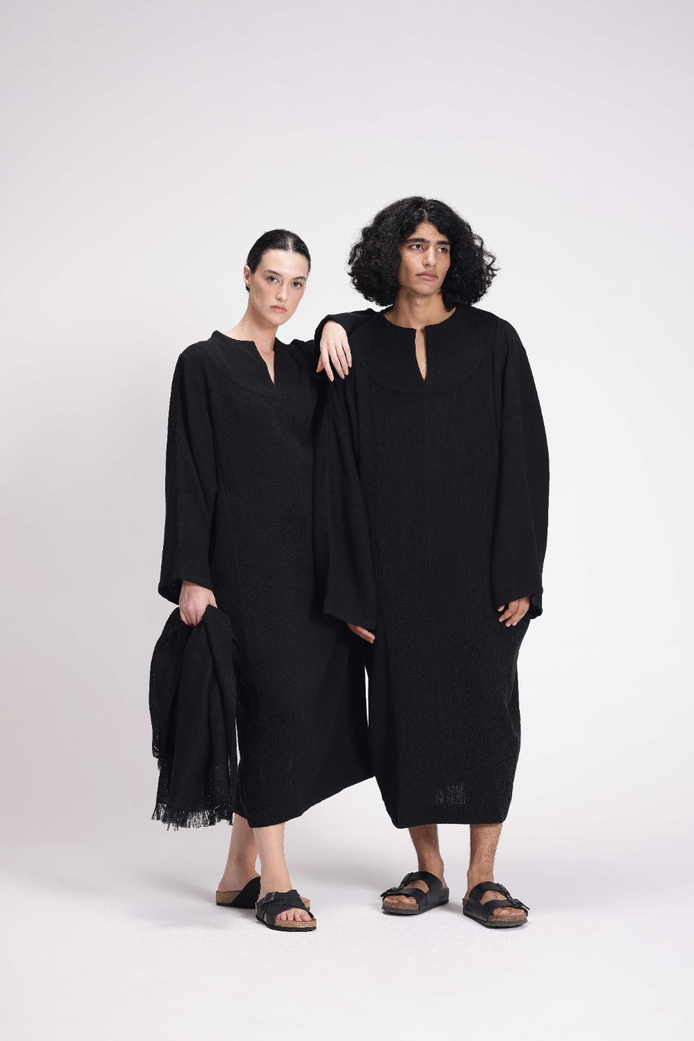 This relaxed-fit dress features a flattering V-neckline and a sophisticated calf-length design. Crafted from stretchable cotton crepe, it offers comfort with a subtle back slit for added ease of movement. Tunic Comes in Size: ONE (2XS,XS,S), TWO (M,L,XL), THREE (2XL,3XL,4XL)