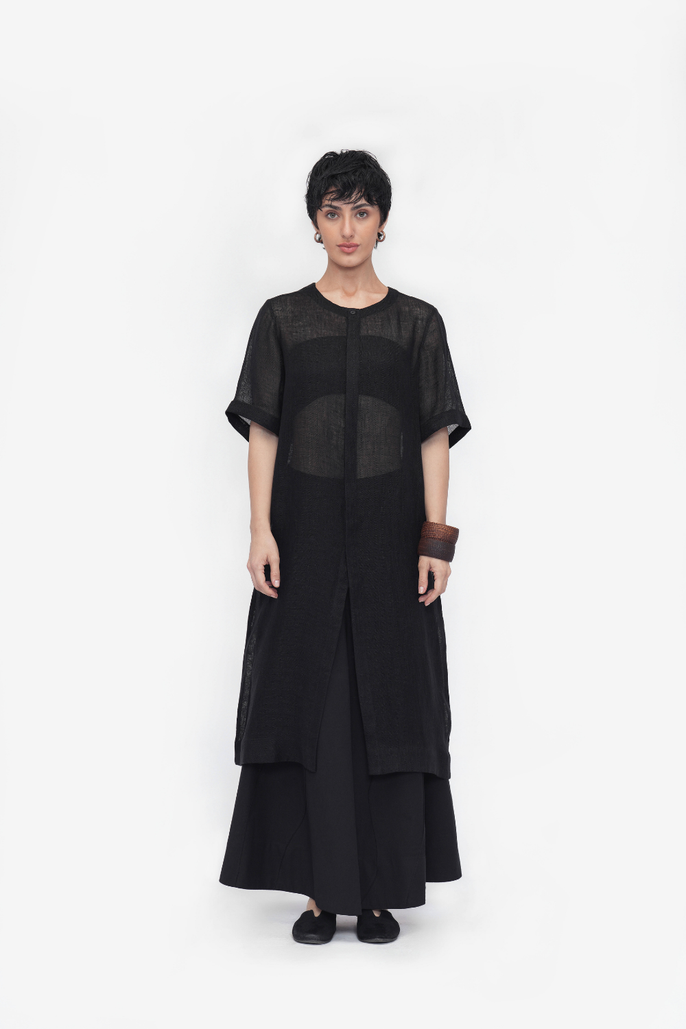 Sugu is the embodiment of relaxed elegance, designed for effortless style. With a straight silhouette that drapes beautifully, this Tunic|Kurta features a faced round neckline and a front French placket. Finished at a calf-length, Sugu tunic offers both comfort and sophistication for any occasion. Inspired by simplicity, it reflects a minimalist approach to design.