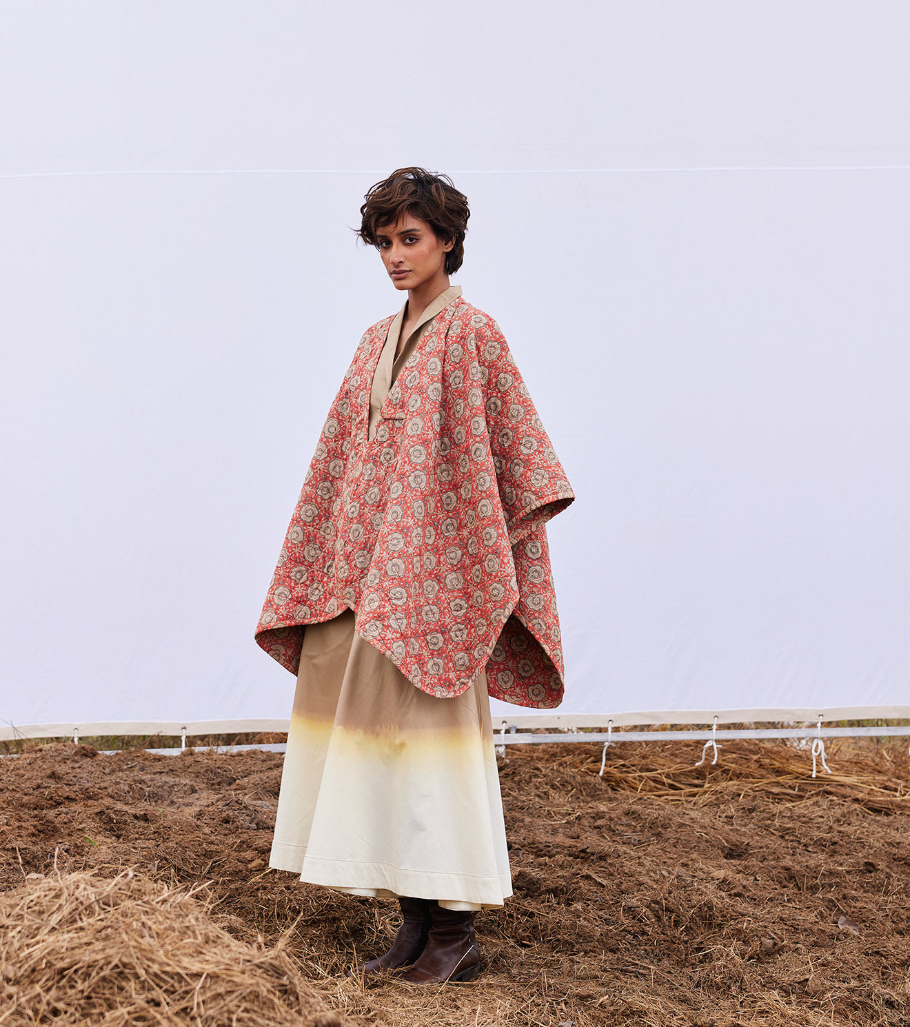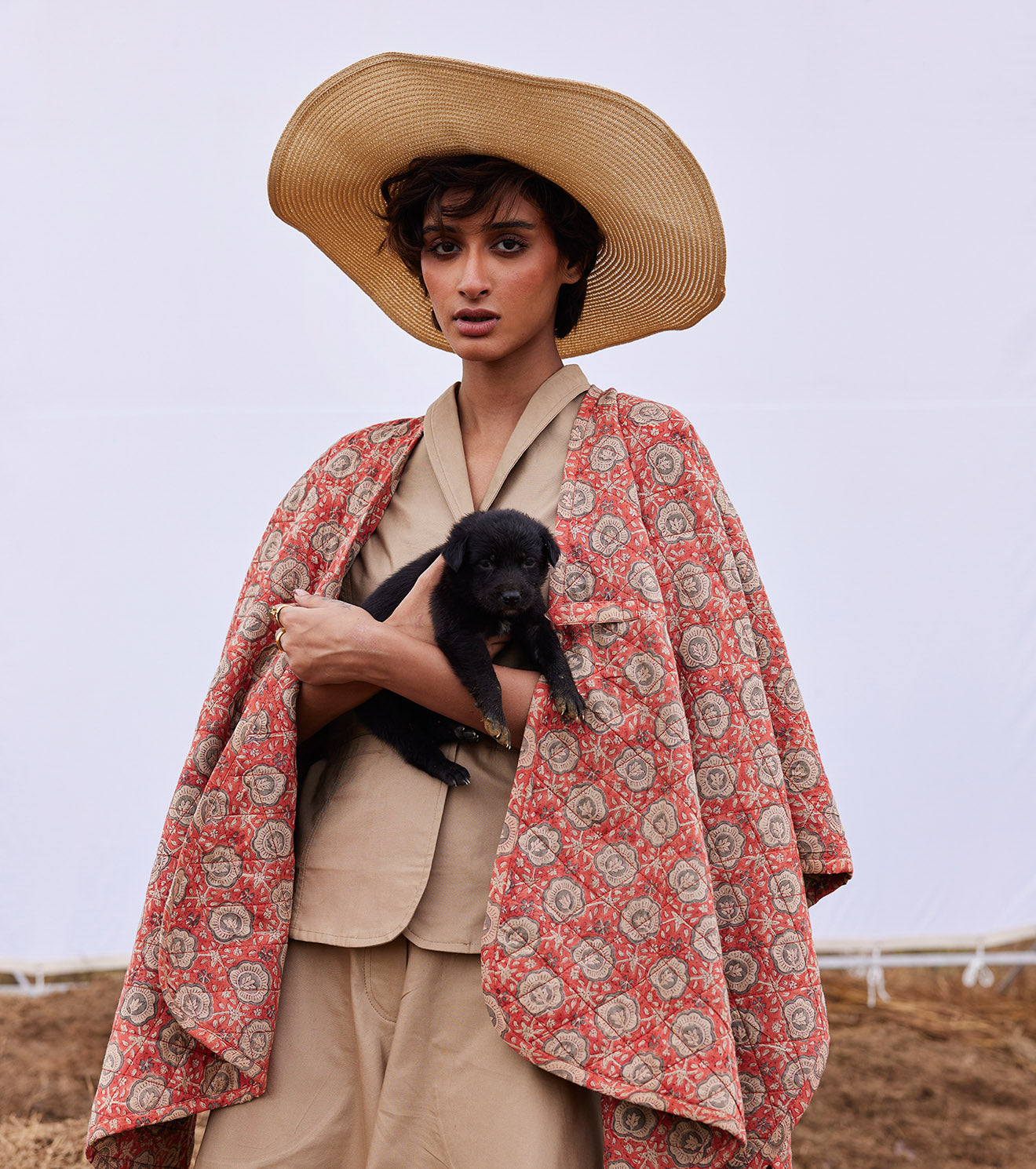 Rooted in handloom cotton and natural dyes, Khara Kapas works with the simplest geometry — circles, squares, triangles — and turns them into silhouettes that feel effortless, global, and emotionally familiar. There is a stillness to their clothes, a sense of returning to slower rhythms and honest materials, without ever losing relevance.