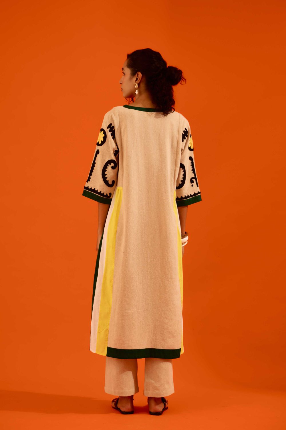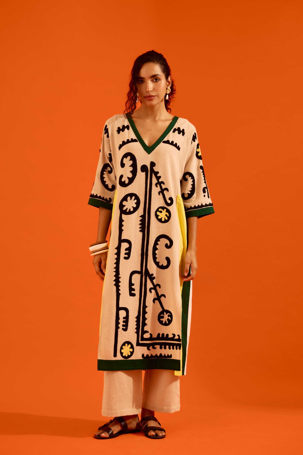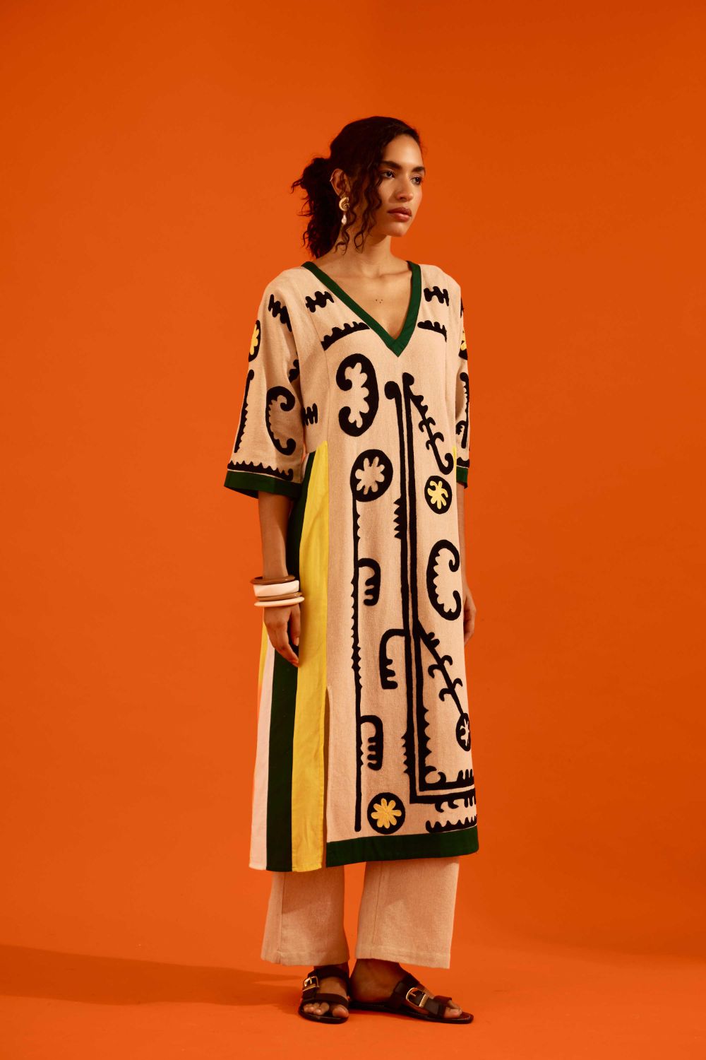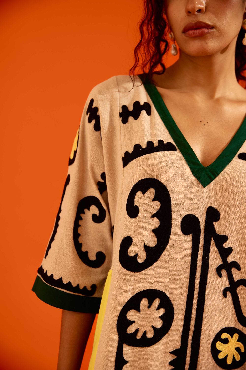 Natural Jute Thread Embroidered Tunic Set with Multi Color Maasai Motif