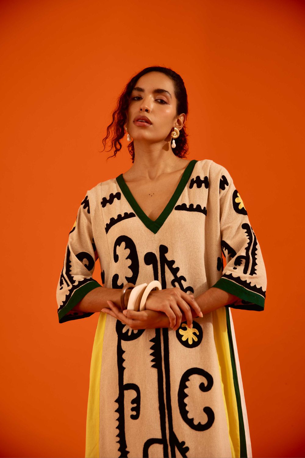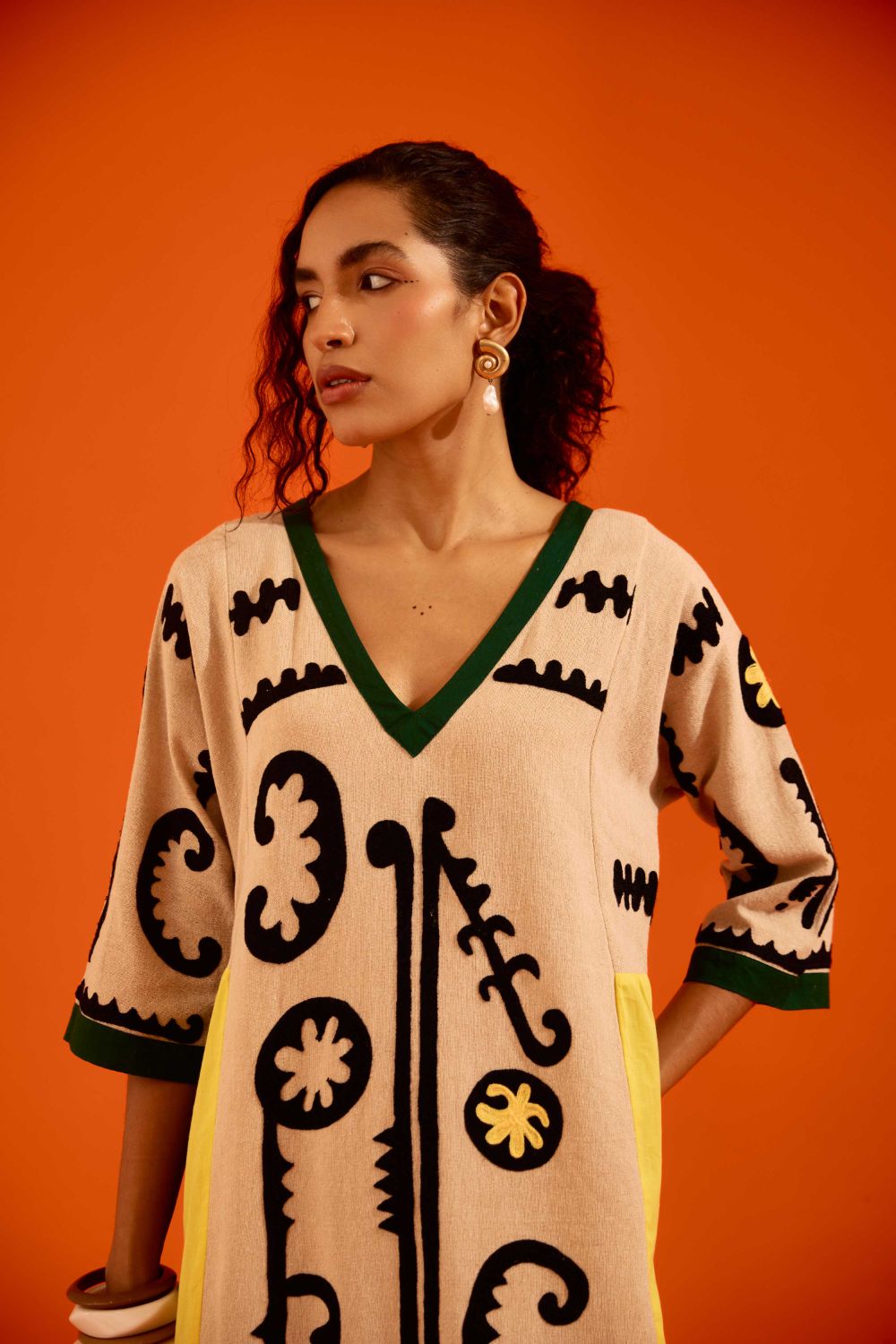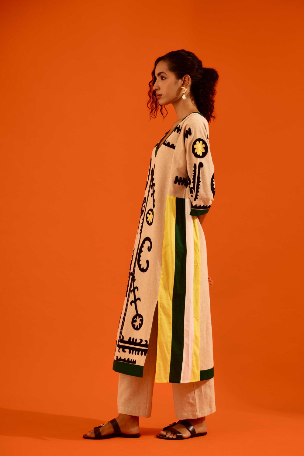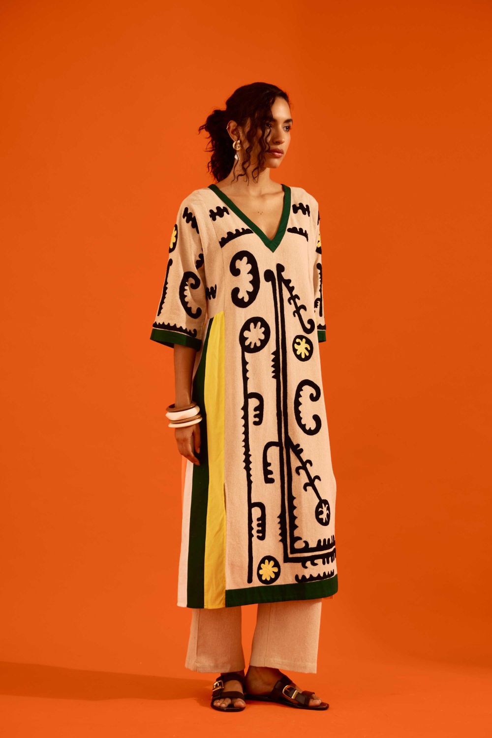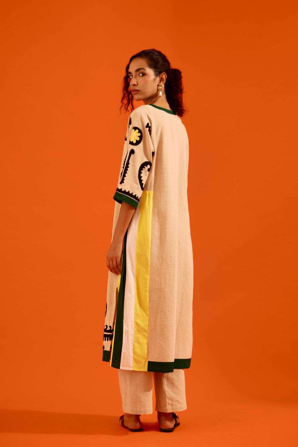 Natural Jute Thread Embroidered Tunic Set with Multi Color Maasai Motif