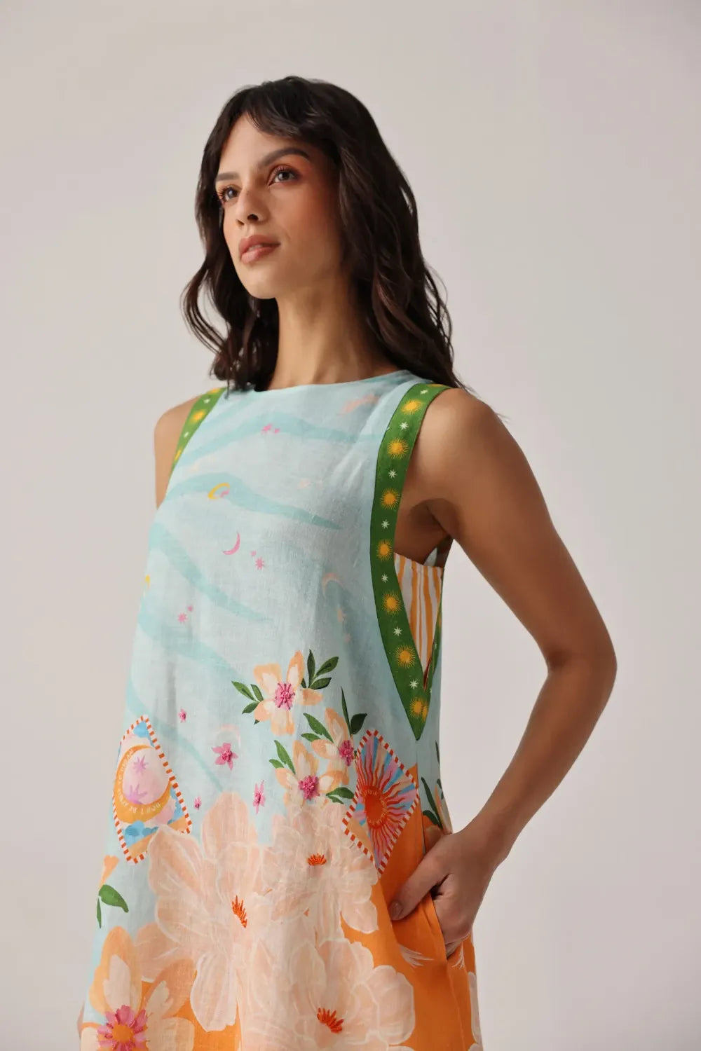 Crafted in breathable linen-lyocell with placement print detailing
