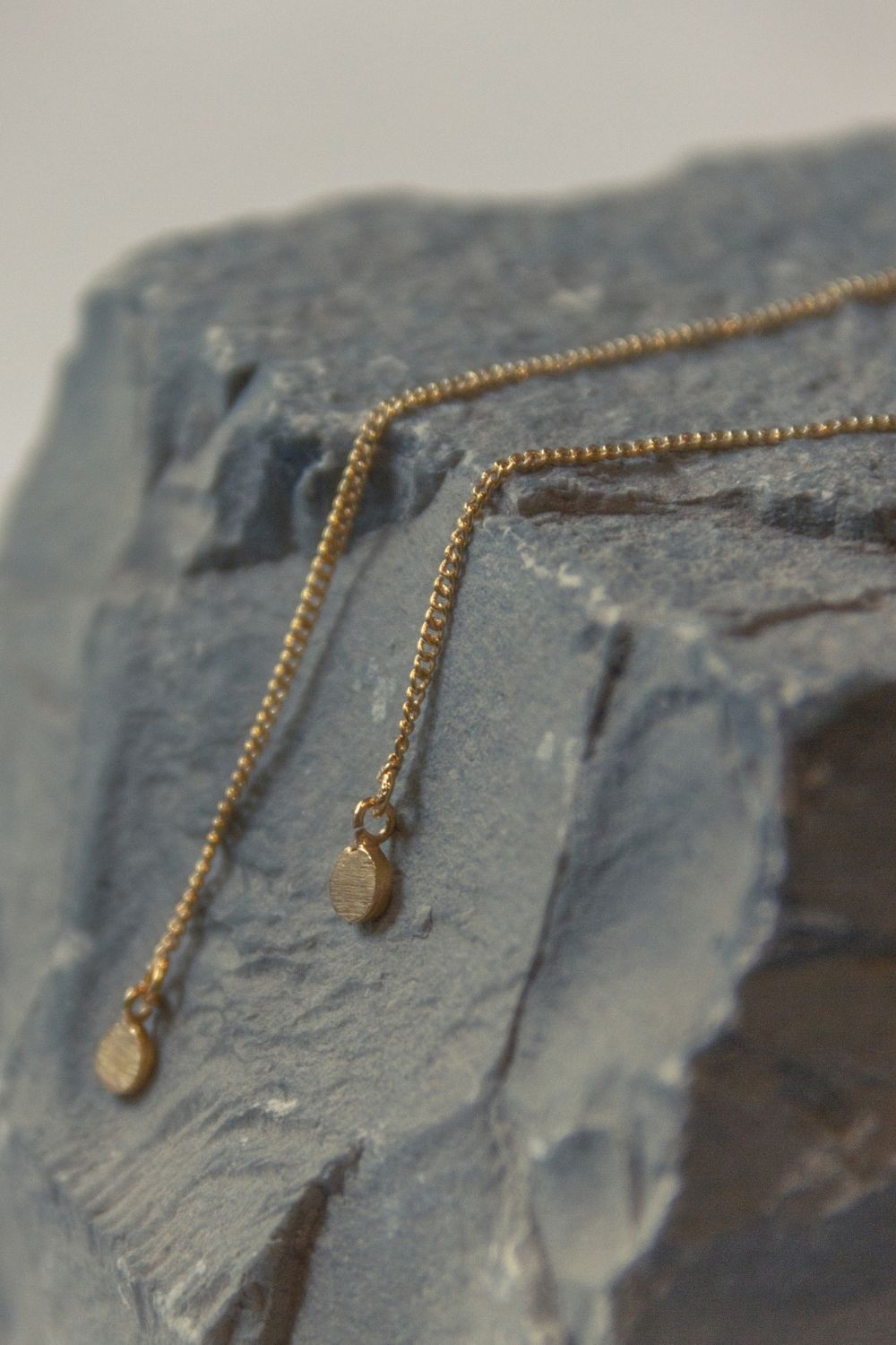 dainty dots swinging from a wispy chain, ethically handcrafted and rhodium plated jewellery, set in brass metal.