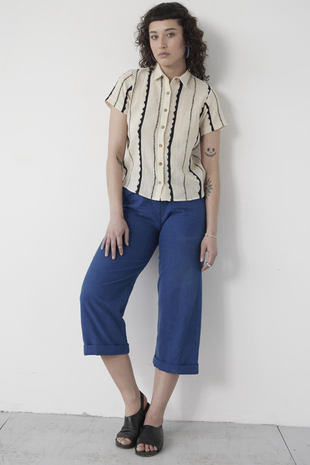 Their silhouettes—relaxed, modern, quietly poetic—carry a language of ease and intention. Natural dyes, azo-free pigments, and slow-woven textiles result in garments that feel honest: soft on the skin, kind to the earth, and deeply respectful of the communities who create them. Each piece is cut and stitched only when ordered, honouring the principle that beauty need not come at the cost of excess.