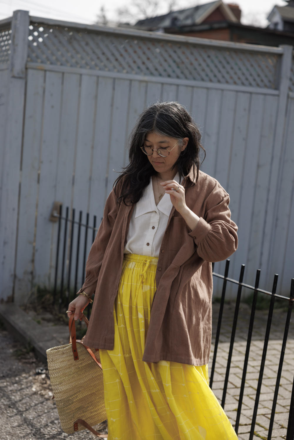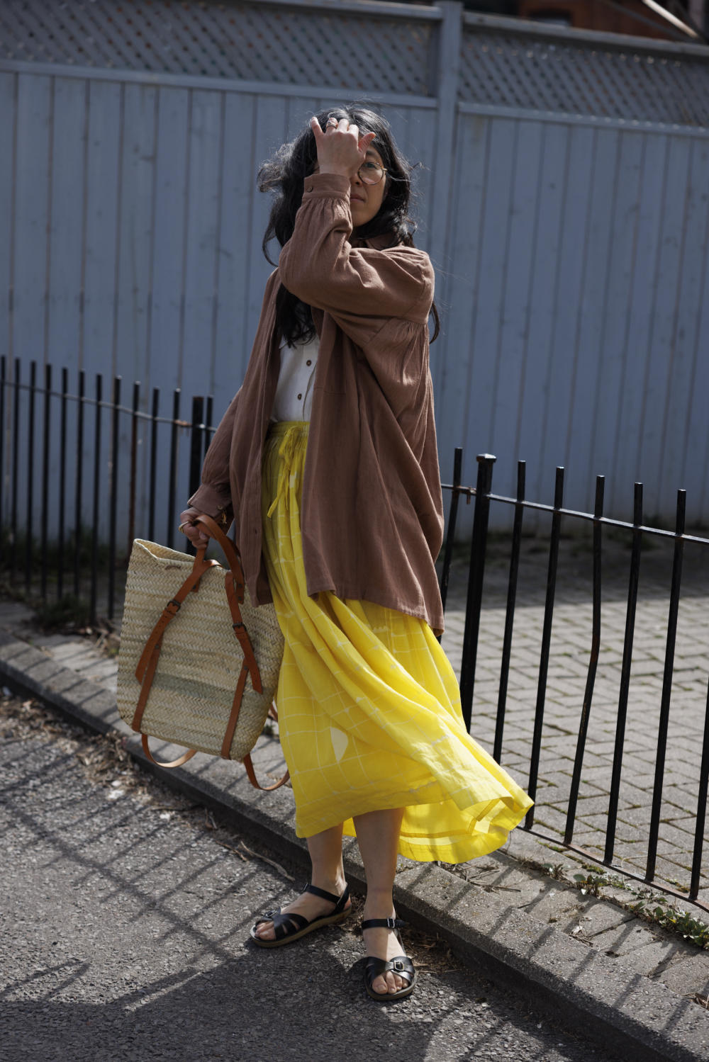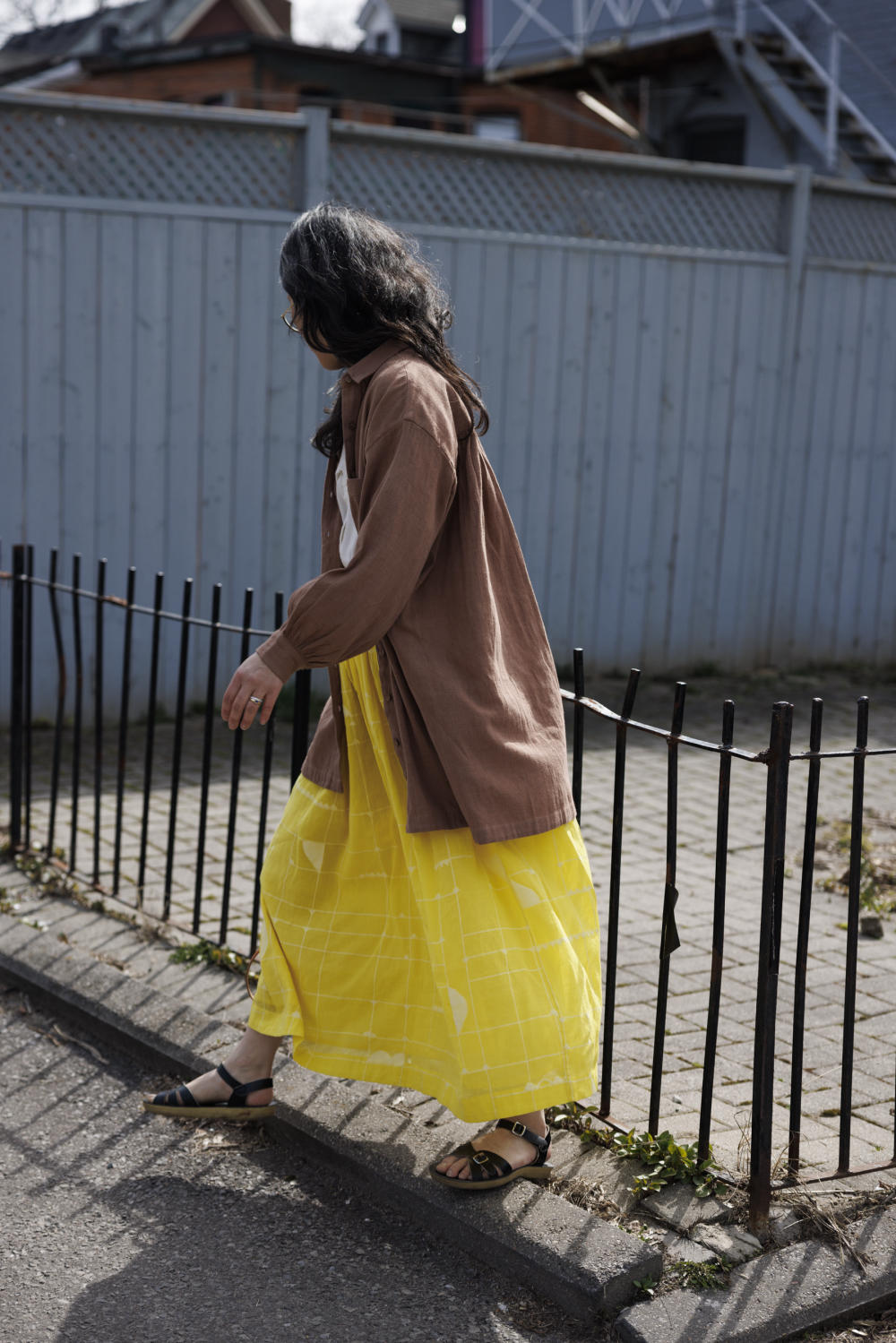 Their silhouettes—relaxed, modern, quietly poetic—carry a language of ease and intention. Natural dyes, azo-free pigments, and slow-woven textiles result in garments that feel honest: soft on the skin, kind to the earth, and deeply respectful of the communities who create them. Each piece is cut and stitched only when ordered, honouring the principle that beauty need not come at the cost of excess.