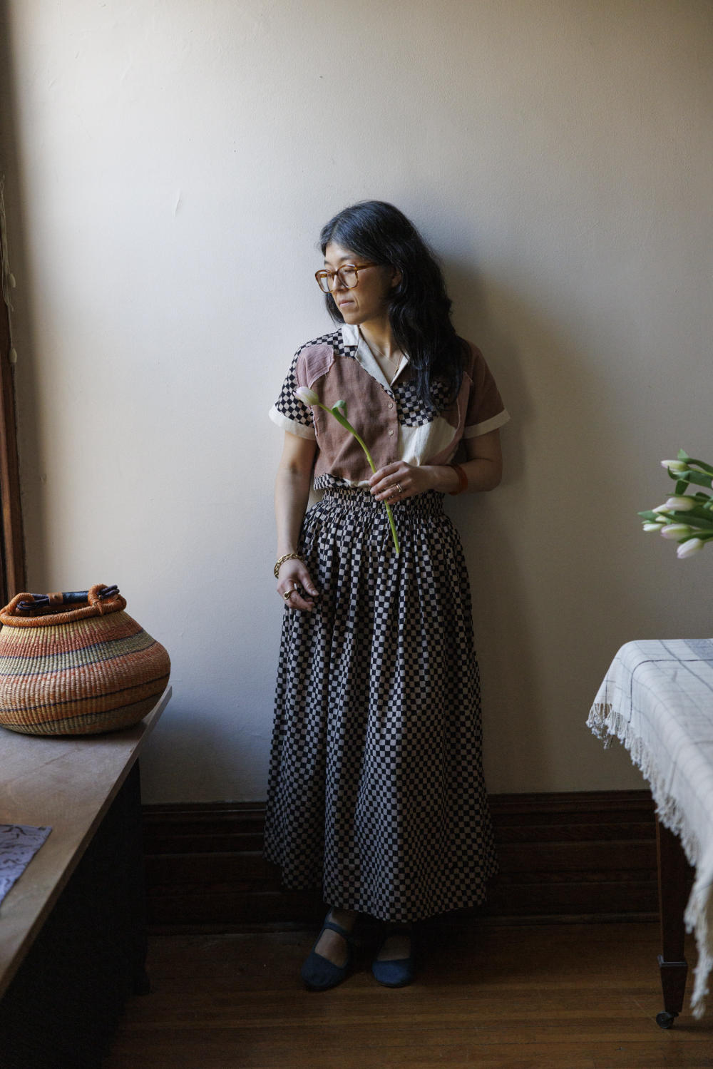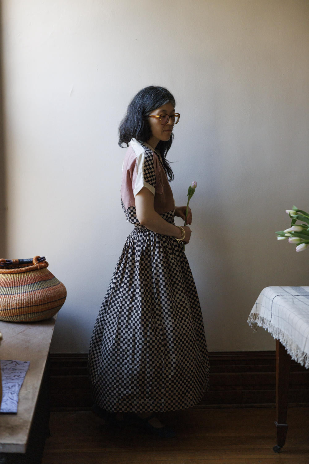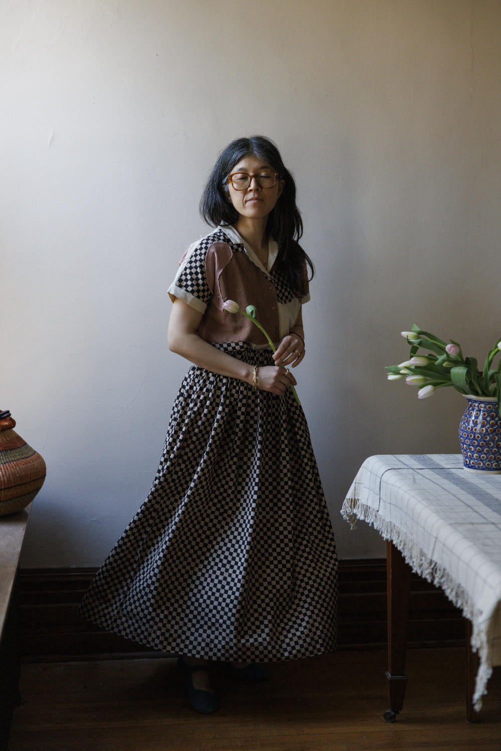 This skirt is made in collaboration between World of Crow and Erica Kim. Keeping in mind the theme of this collection, this skirt also has a vintage vibe. With its elasticated waist for ultimate comfort, this skirt features flattering gathers that accentuate the waistline. The flowy hem gracefully falls at the mid-calf line, adding a touch of elegance.