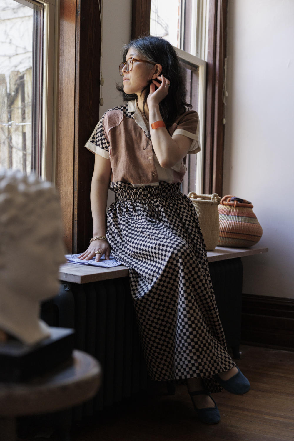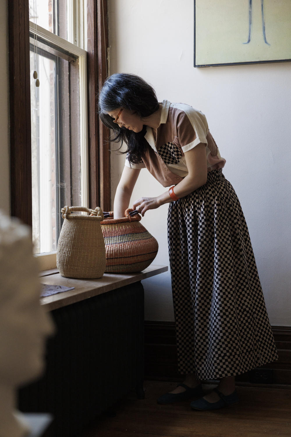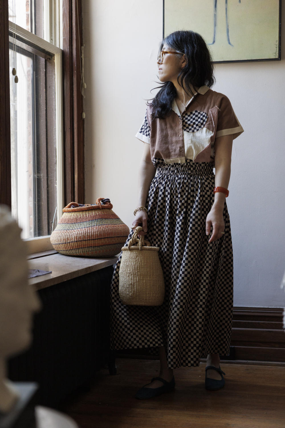 This skirt is made in collaboration between World of Crow and Erica Kim. Keeping in mind the theme of this collection, this skirt also has a vintage vibe. With its elasticated waist for ultimate comfort, this skirt features flattering gathers that accentuate the waistline. The flowy hem gracefully falls at the mid-calf line, adding a touch of elegance.