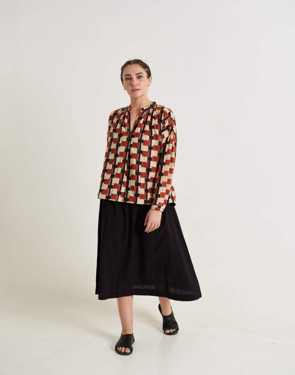 Their silhouettes—relaxed, modern, quietly poetic—carry a language of ease and intention. Natural dyes, azo-free pigments, and slow-woven textiles result in garments that feel honest: soft on the skin, kind to the earth, and deeply respectful of the communities who create them. Each piece is cut and stitched only when ordered, honouring the principle that beauty need not come at the cost of excess.