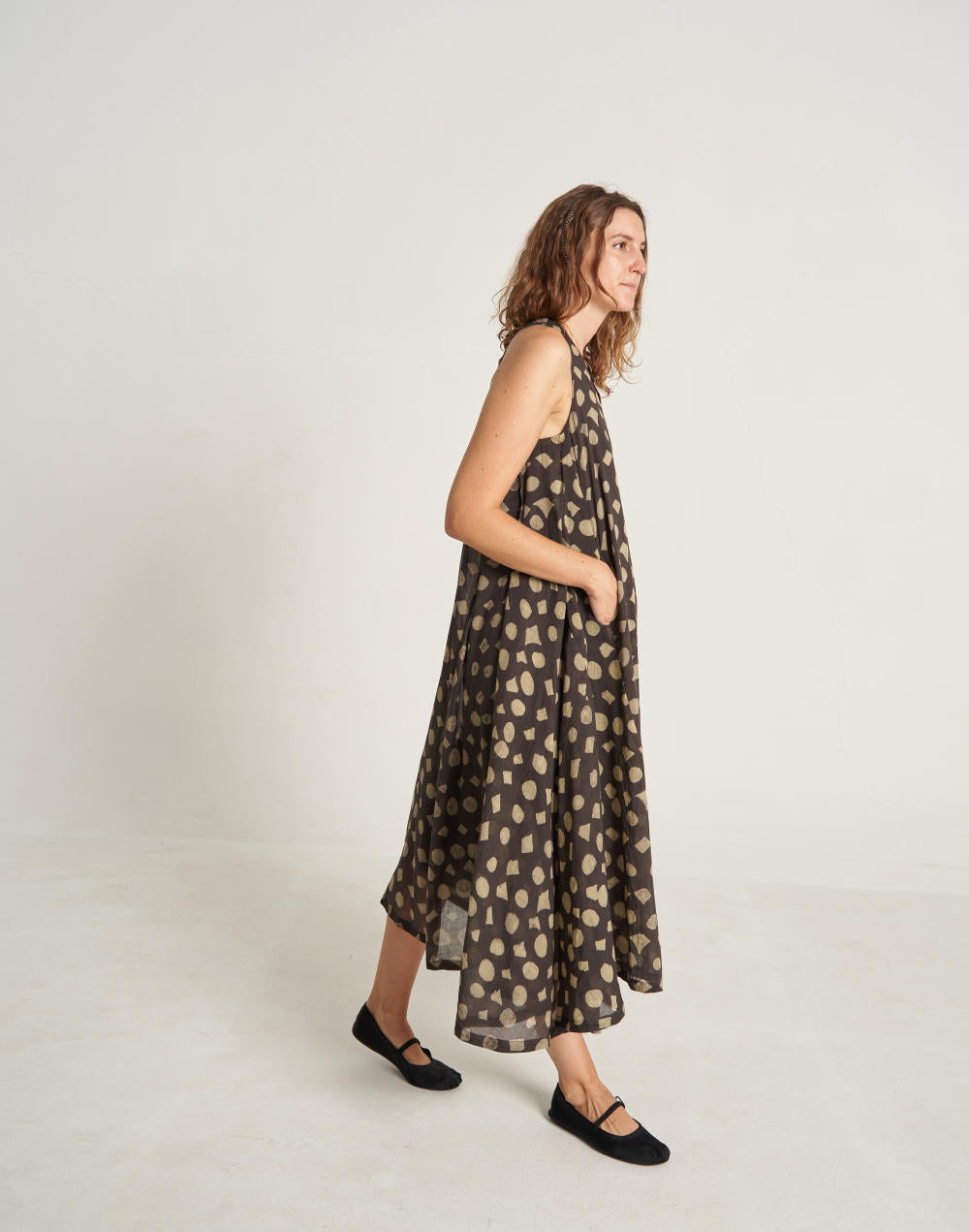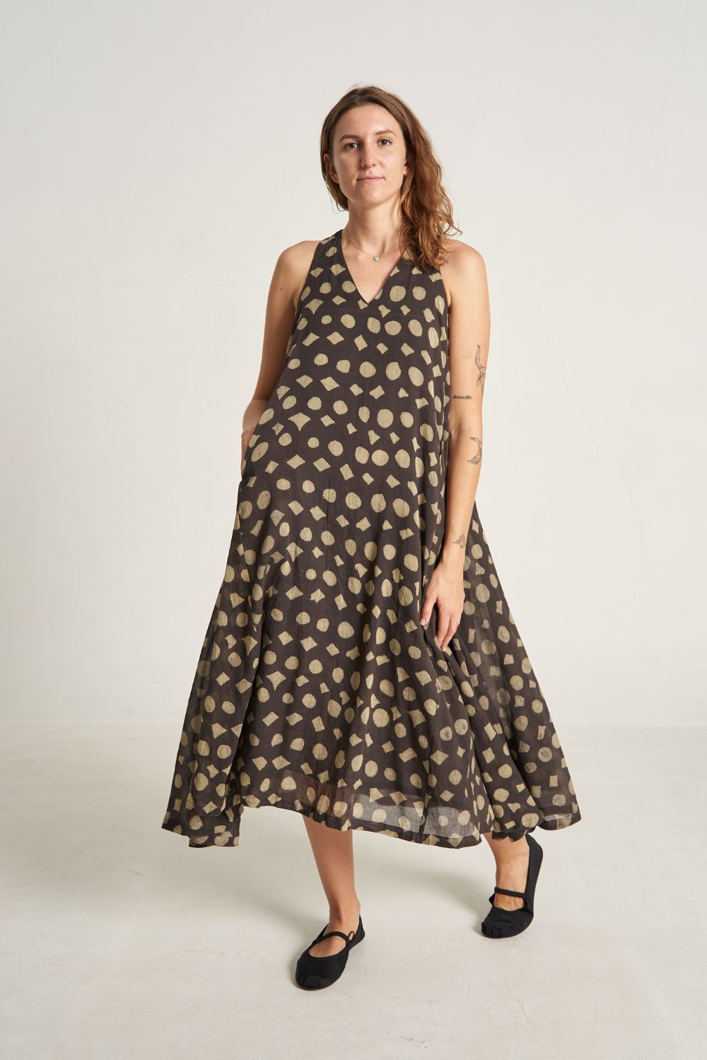 Their silhouettes—relaxed, modern, quietly poetic—carry a language of ease and intention. Natural dyes, azo-free pigments, and slow-woven textiles result in garments that feel honest: soft on the skin, kind to the earth, and deeply respectful of the communities who create them. Each piece is cut and stitched only when ordered, honouring the principle that beauty need not come at the cost of excess.