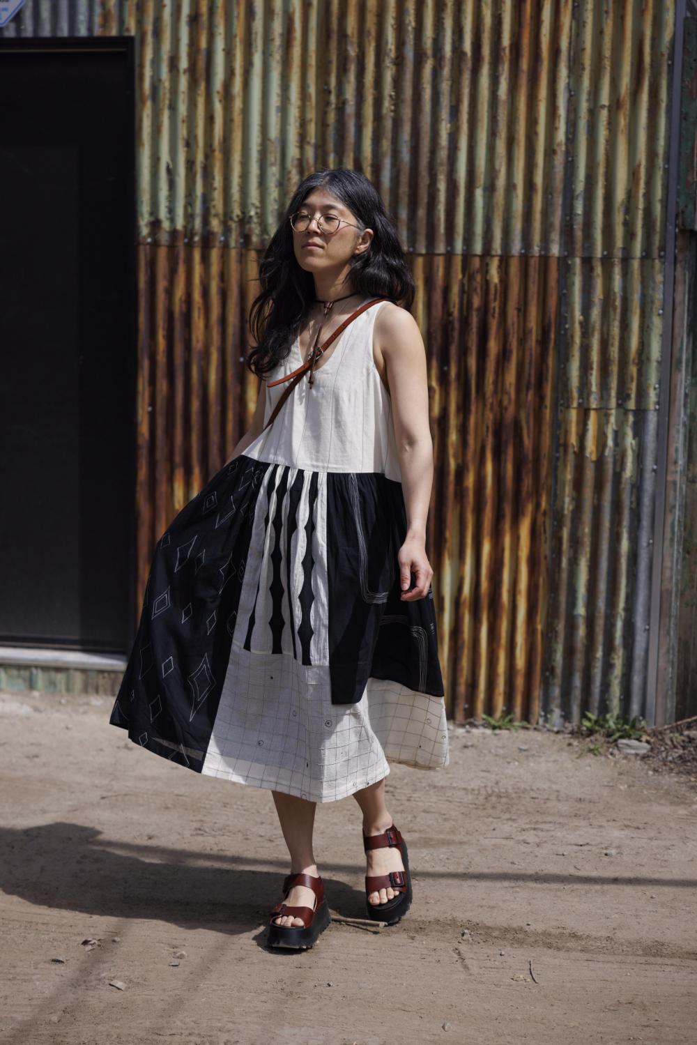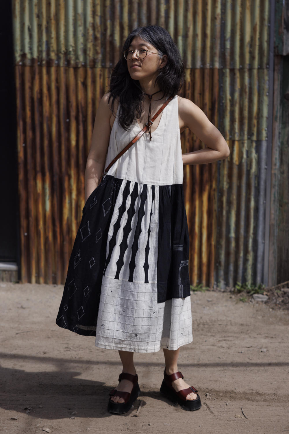 Discover our Joan dress, a pattern filled dress for your everyday wear. The applique and patchwork makes this dress special. Each piece of fabric is made from hand-woven cotton gives the dress rich feel & texture. Layer this up with our Artist Smock and creating a dynamic look for yourself!