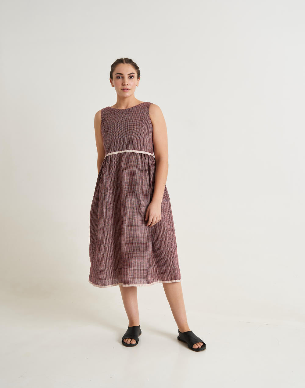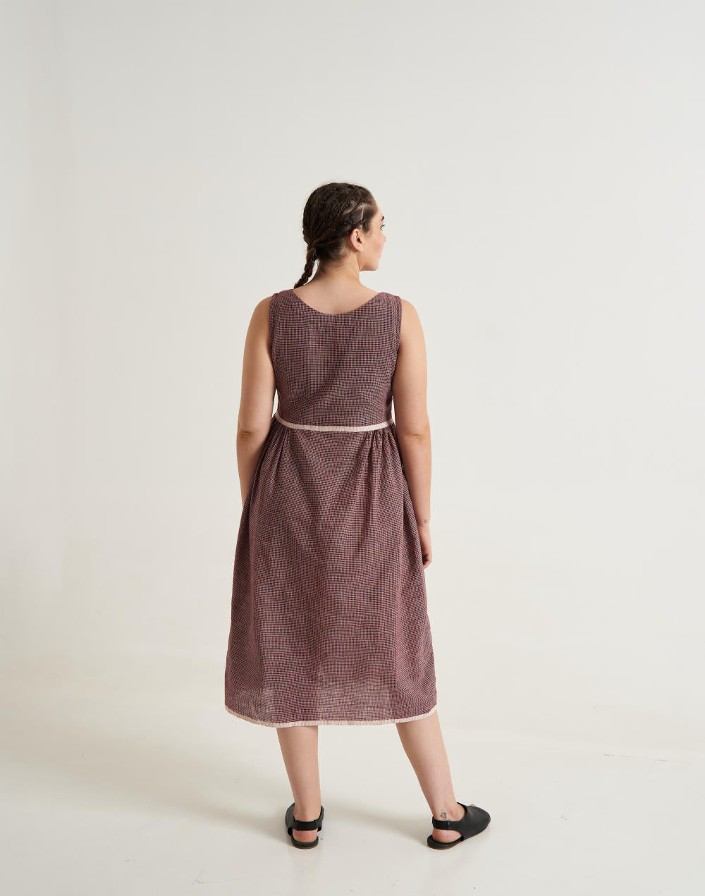 Discover the Sangria Checkered Midi Dress from our Fall '23 Collection. Handcrafted with care, its classic checkered pattern can be perfectly layered for fall. Ethically made from handwoven fabric, Perfect for casual outings or semi-formal occasions. Pair with simple footwear like sandals or ballet flats for a relaxed look.