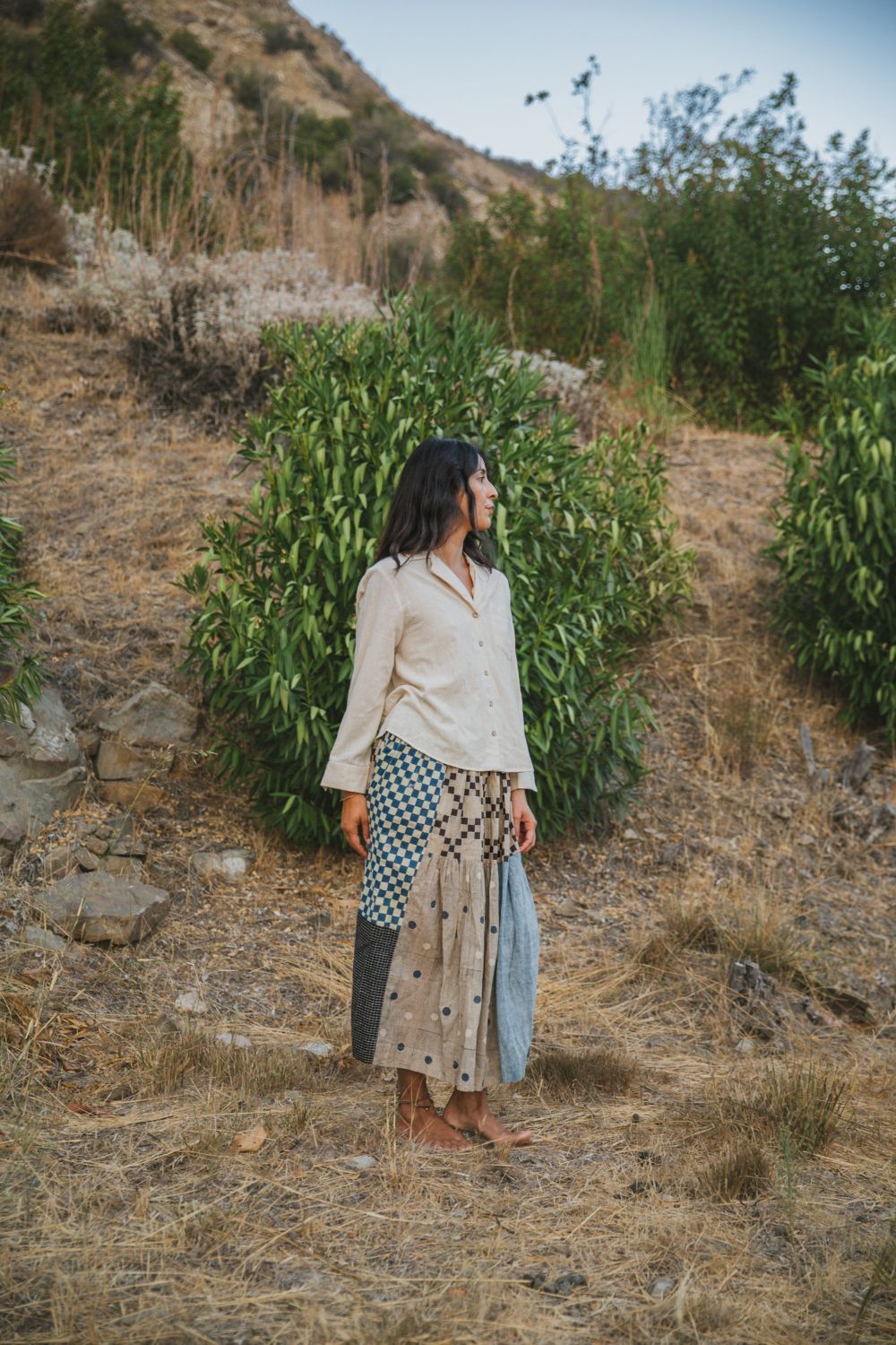 Their silhouettes—relaxed, modern, quietly poetic—carry a language of ease and intention. Natural dyes, azo-free pigments, and slow-woven textiles result in garments that feel honest: soft on the skin, kind to the earth, and deeply respectful of the communities who create them. Each piece is cut and stitched only when ordered, honouring the principle that beauty need not come at the cost of excess.
