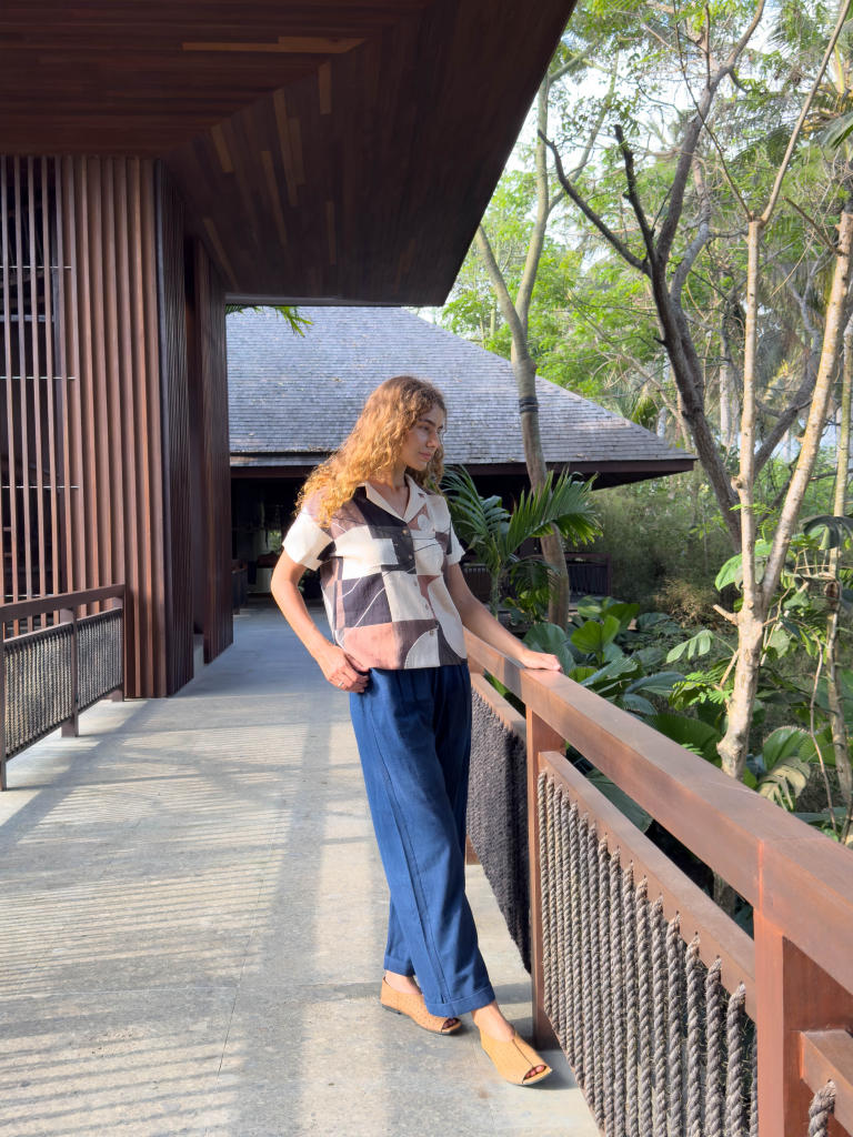 Their silhouettes—relaxed, modern, quietly poetic—carry a language of ease and intention. Natural dyes, azo-free pigments, and slow-woven textiles result in garments that feel honest: soft on the skin, kind to the earth, and deeply respectful of the communities who create them. Each piece is cut and stitched only when ordered, honouring the principle that beauty need not come at the cost of excess.