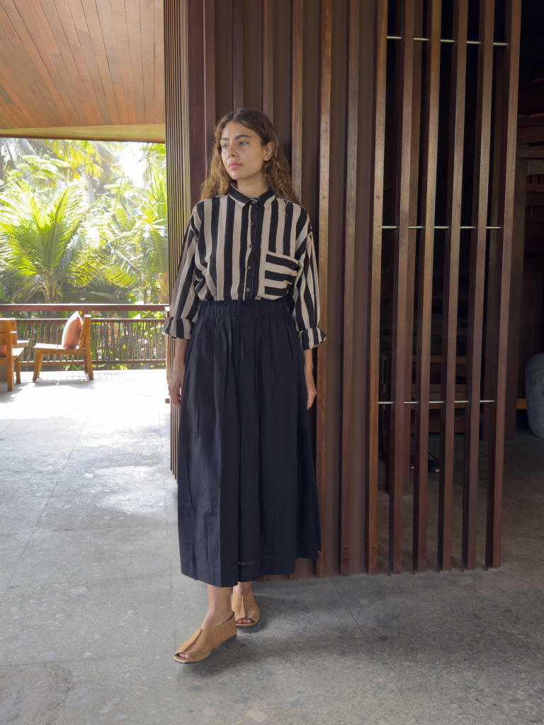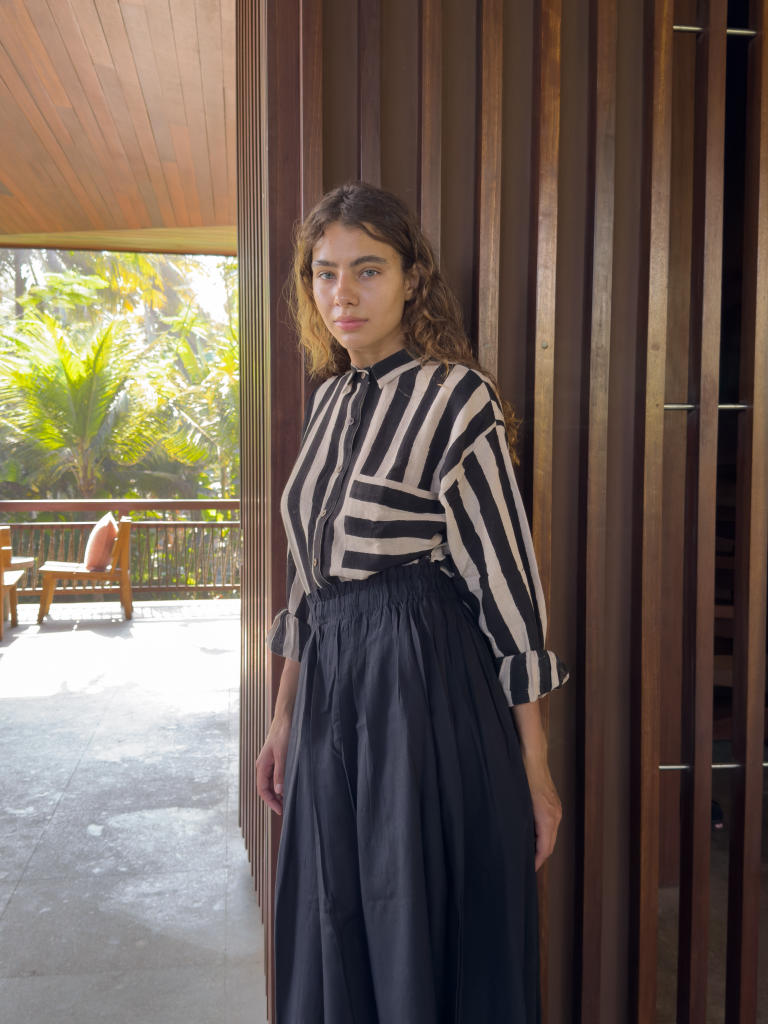 Their silhouettes—relaxed, modern, quietly poetic—carry a language of ease and intention. Natural dyes, azo-free pigments, and slow-woven textiles result in garments that feel honest: soft on the skin, kind to the earth, and deeply respectful of the communities who create them. Each piece is cut and stitched only when ordered, honouring the principle that beauty need not come at the cost of excess.