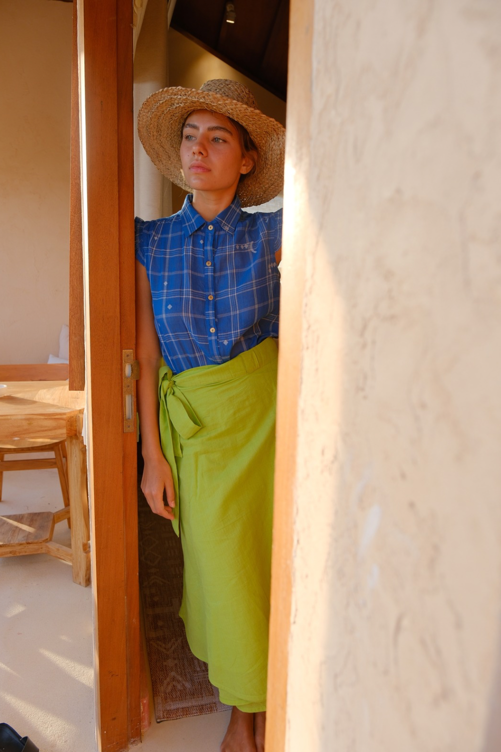 Their silhouettes—relaxed, modern, quietly poetic—carry a language of ease and intention. Natural dyes, azo-free pigments, and slow-woven textiles result in garments that feel honest: soft on the skin, kind to the earth, and deeply respectful of the communities who create them. Each piece is cut and stitched only when ordered, honouring the principle that beauty need not come at the cost of excess.