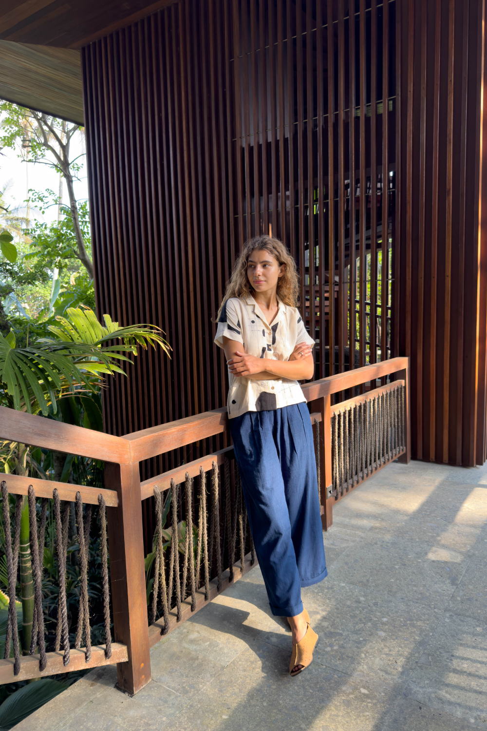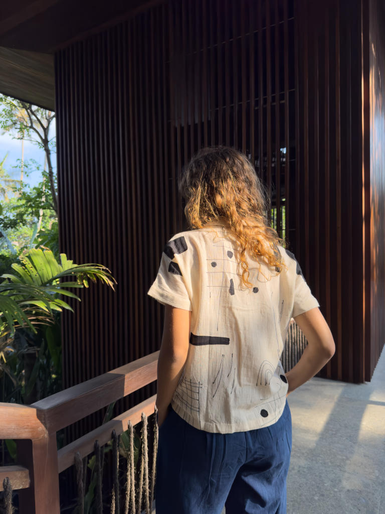 Their silhouettes—relaxed, modern, quietly poetic—carry a language of ease and intention. Natural dyes, azo-free pigments, and slow-woven textiles result in garments that feel honest: soft on the skin, kind to the earth, and deeply respectful of the communities who create them. Each piece is cut and stitched only when ordered, honouring the principle that beauty need not come at the cost of excess.