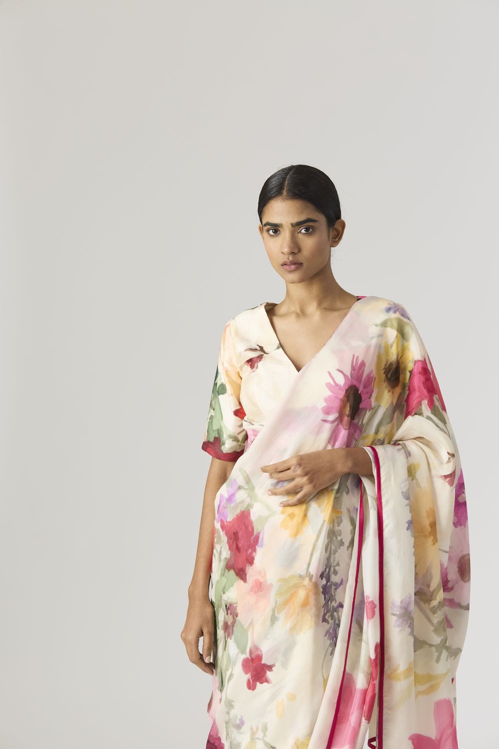 Priya’s strength lies not just in the imagery she creates, but in how she translates it onto silhouettes that honour real bodies. Her pieces are designed with ease and movement in mind — styles that drape, soften, and adapt effortlessly across sizes and shapes. Nothing feels intimidating; everything feels wearable.