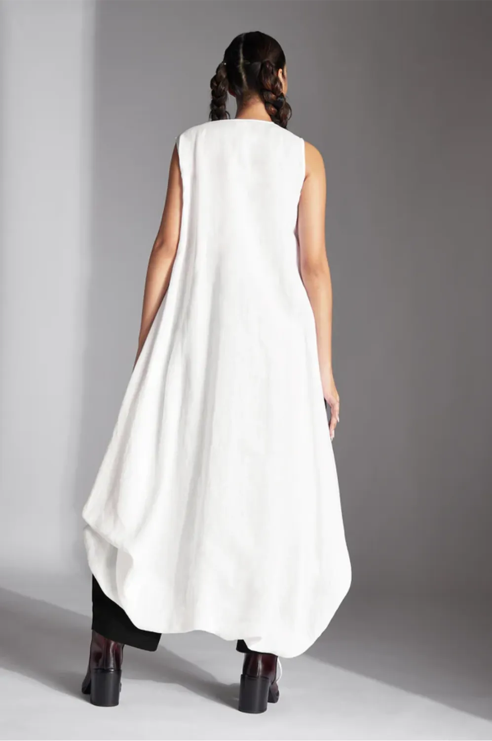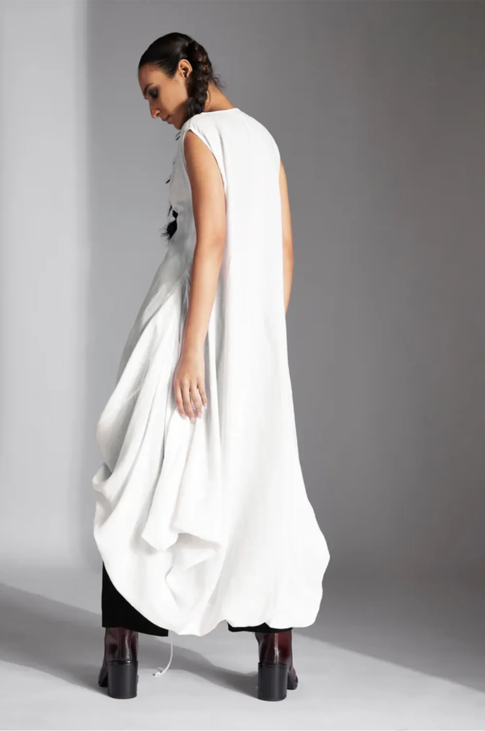 Chola’s universe begins with thoughtful materials. Recycled cottons, post-consumer fabrics, and free-cutting techniques come together in a kind of mindful choreography—one that honours form without creating waste, and prioritises movement over rigidity. This is clothing that feels lived-in yet architectural; pared-back yet quietly avant-garde.