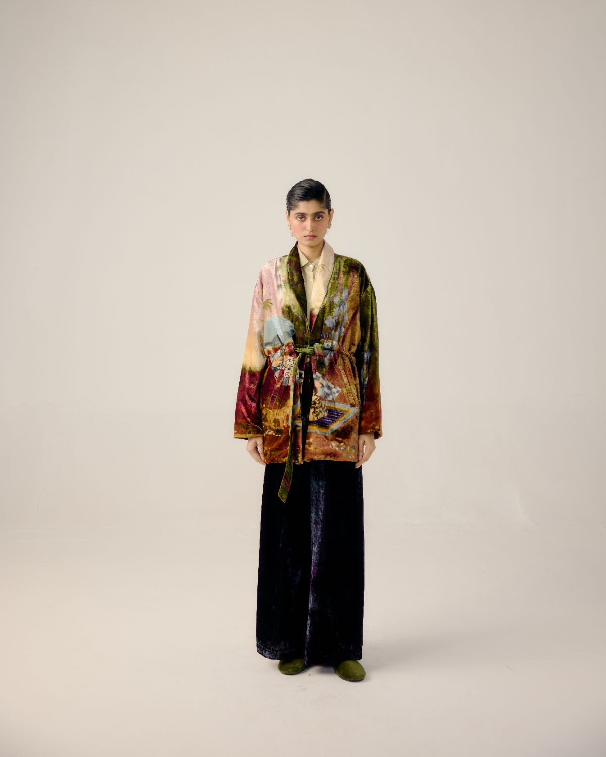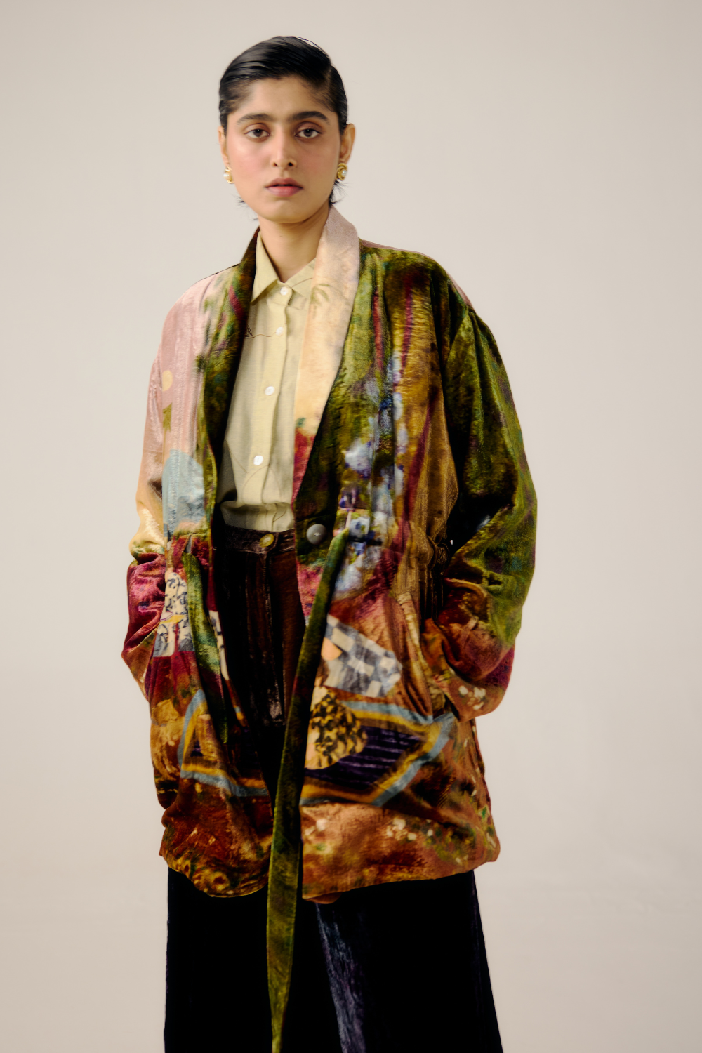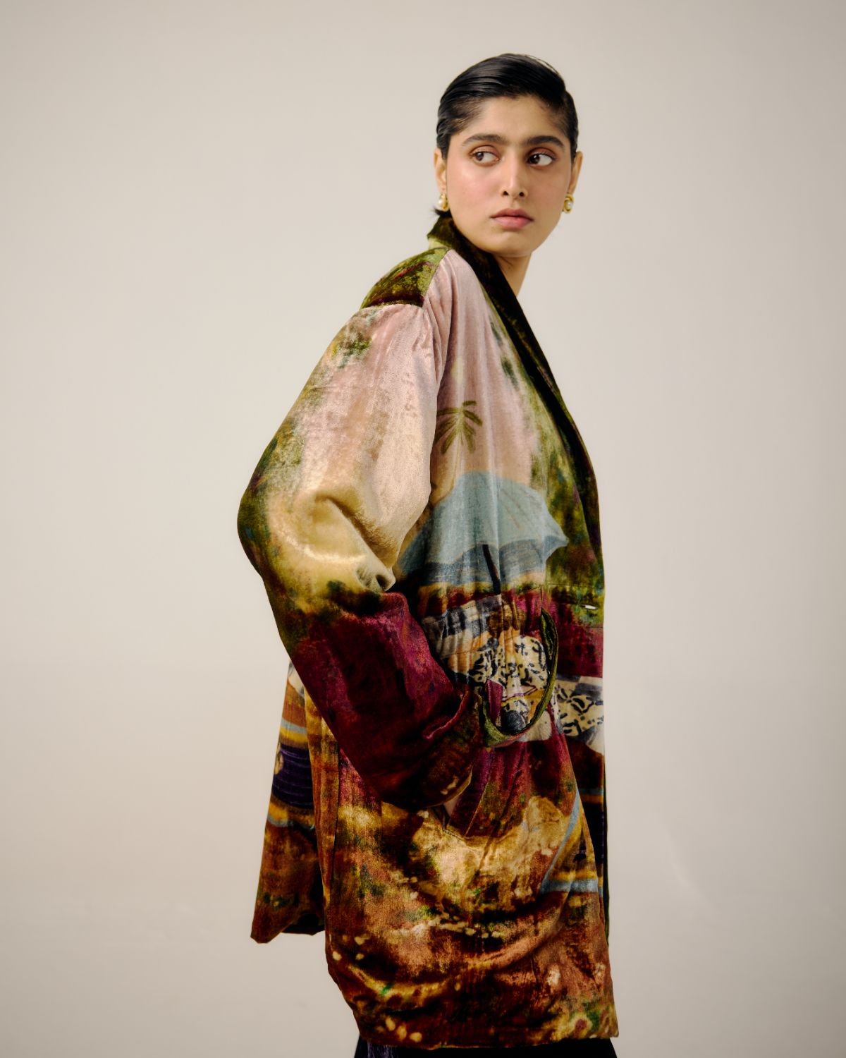 CORD blurs the line between art and attire in a way few labels dare to. Here, fabrics become canvases; illustrations—drawn by hand, steeped in imagination—flow across silhouettes that feel sculptural yet deeply wearable. Each piece has a texture of memory to it, as if it carries echoes of a past life, now reframed for a contemporary world.