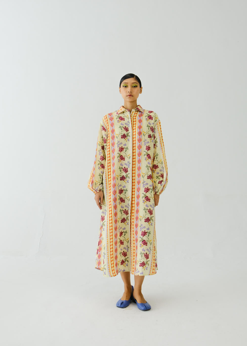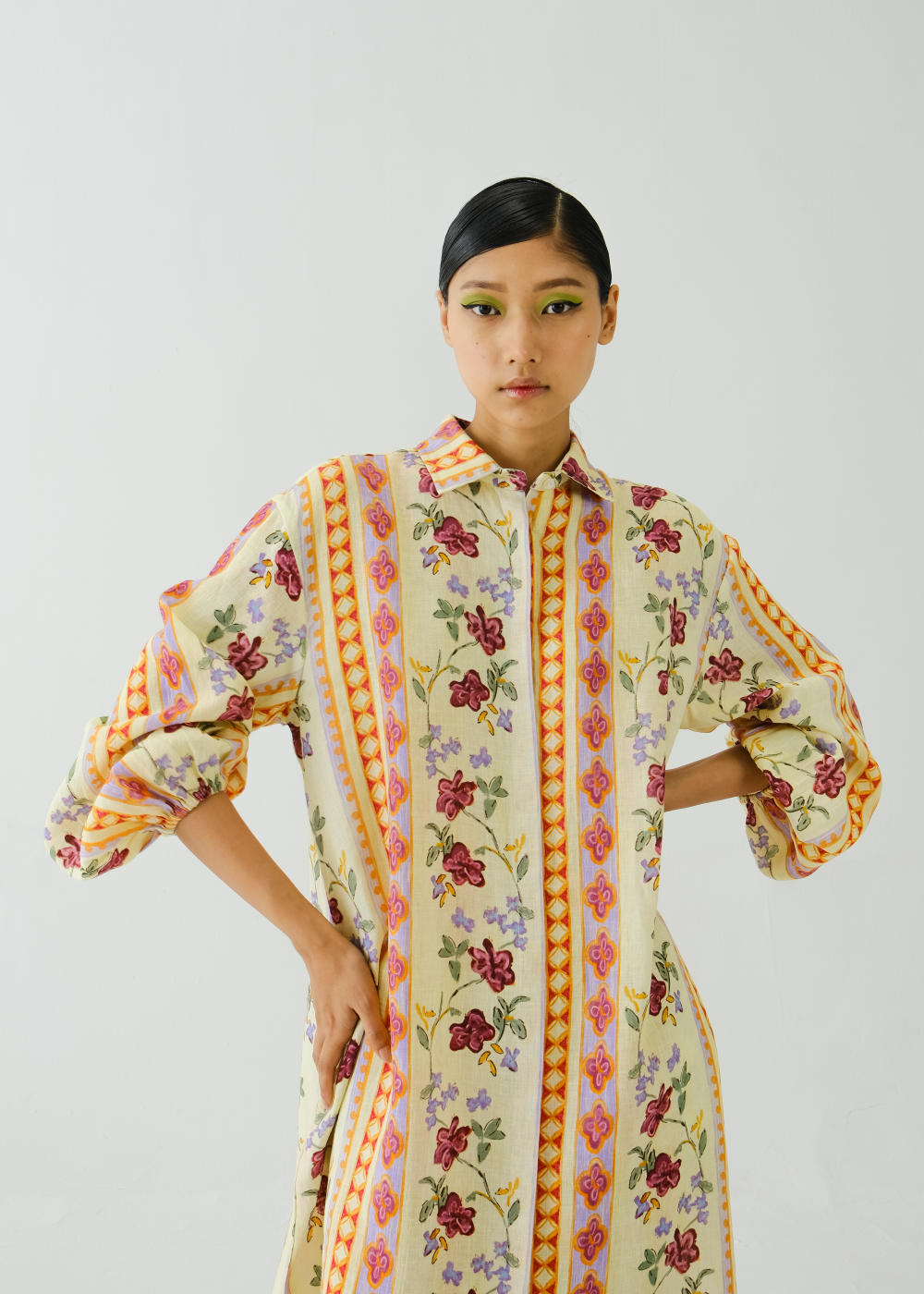 The Ava Dress, crafted from breathable linen in a vibrant Folk Bloom print, is a perfect blend of comfort and effortless style. Designed with a straight fit and a relaxed silhouette, it drapes beautifully for an easy, laid-back feel. Featuring Full sleeves and a flattering calf-length cut, this versatile dress is ideal for both casual and refined occasions.