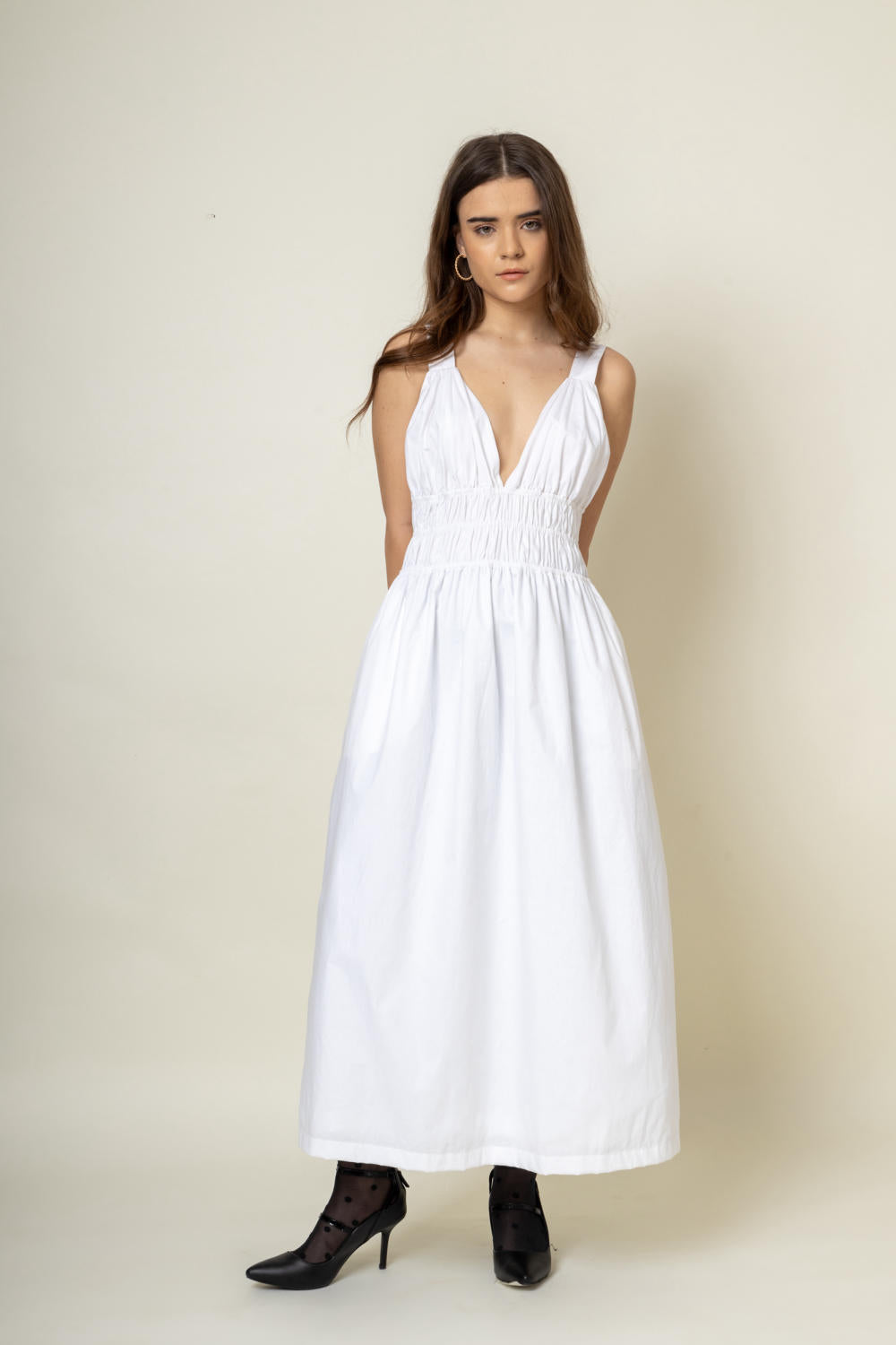 Description: Strappy dress with rushing at the waist and side pockets
