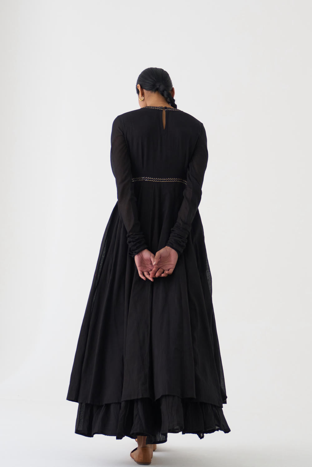 DOT is built on the philosophy of simple living: colours borrowed from nature, silhouettes that float rather than cling, and craftsmanship that honours tradition without performing it. There is a serenity to their pieces — soft pastels, fluid drapes, minimal embroidery, and a lingering hint of the vintage. Everything feels poetic, but never precious; modern, but never loud. Their garments live in that delicate balance where texture, alignment, and movement tell the story.