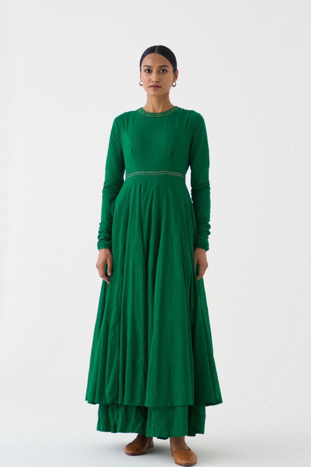 Cotton Anarkali kurta carries grace in its luxurious gheras and myriad kalis ,stitched keenly together paired with soft cotton pants.