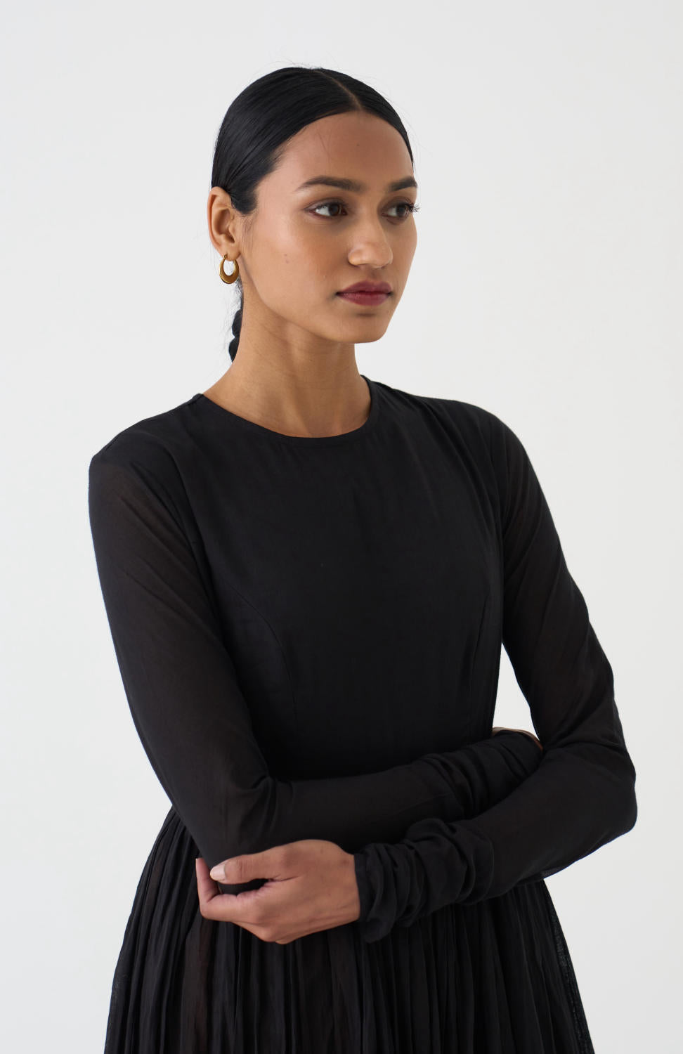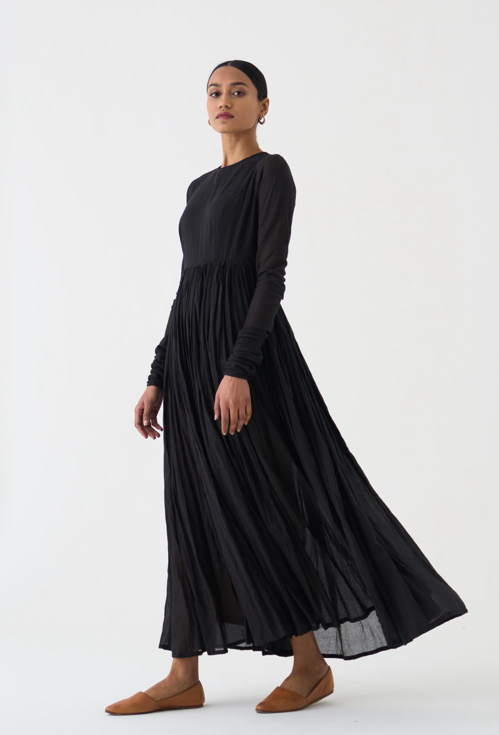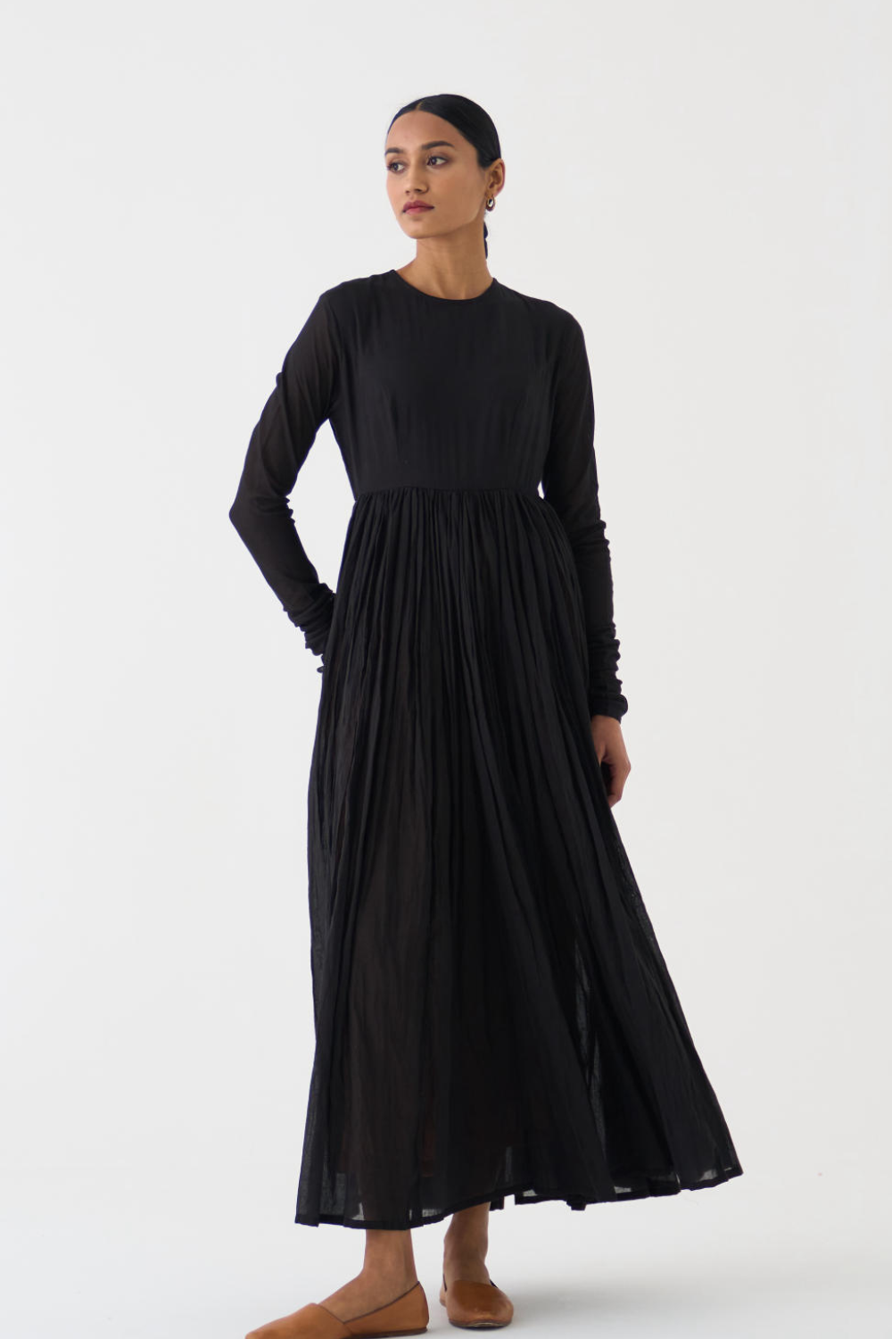 DOT is built on the philosophy of simple living: colours borrowed from nature, silhouettes that float rather than cling, and craftsmanship that honours tradition without performing it. There is a serenity to their pieces — soft pastels, fluid drapes, minimal embroidery, and a lingering hint of the vintage. Everything feels poetic, but never precious; modern, but never loud. Their garments live in that delicate balance where texture, alignment, and movement tell the story.