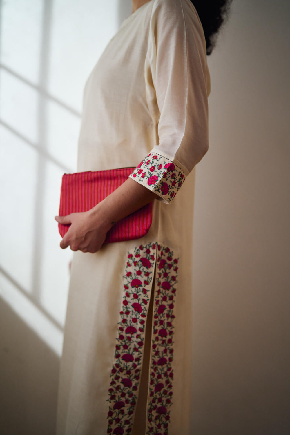 DOT is built on the philosophy of simple living: colours borrowed from nature, silhouettes that float rather than cling, and craftsmanship that honours tradition without performing it. There is a serenity to their pieces — soft pastels, fluid drapes, minimal embroidery, and a lingering hint of the vintage. Everything feels poetic, but never precious; modern, but never loud. Their garments live in that delicate balance where texture, alignment, and movement tell the story.