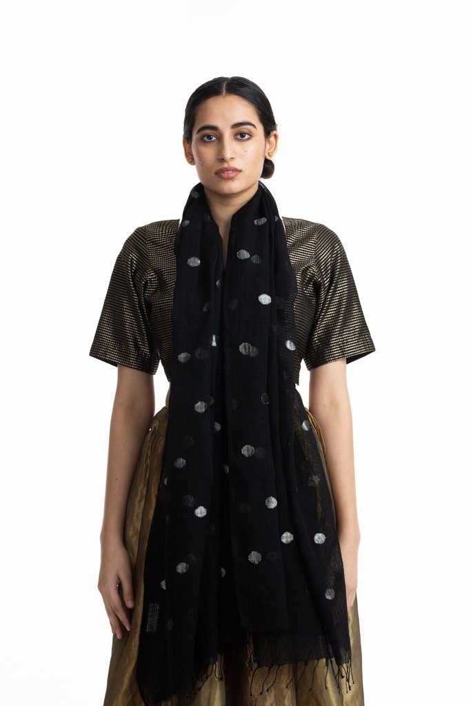 Handwoven in fine cotton & Silk on a traditonal loom in central India. The scarf is light weight making it easy to carry. It can be worn throught