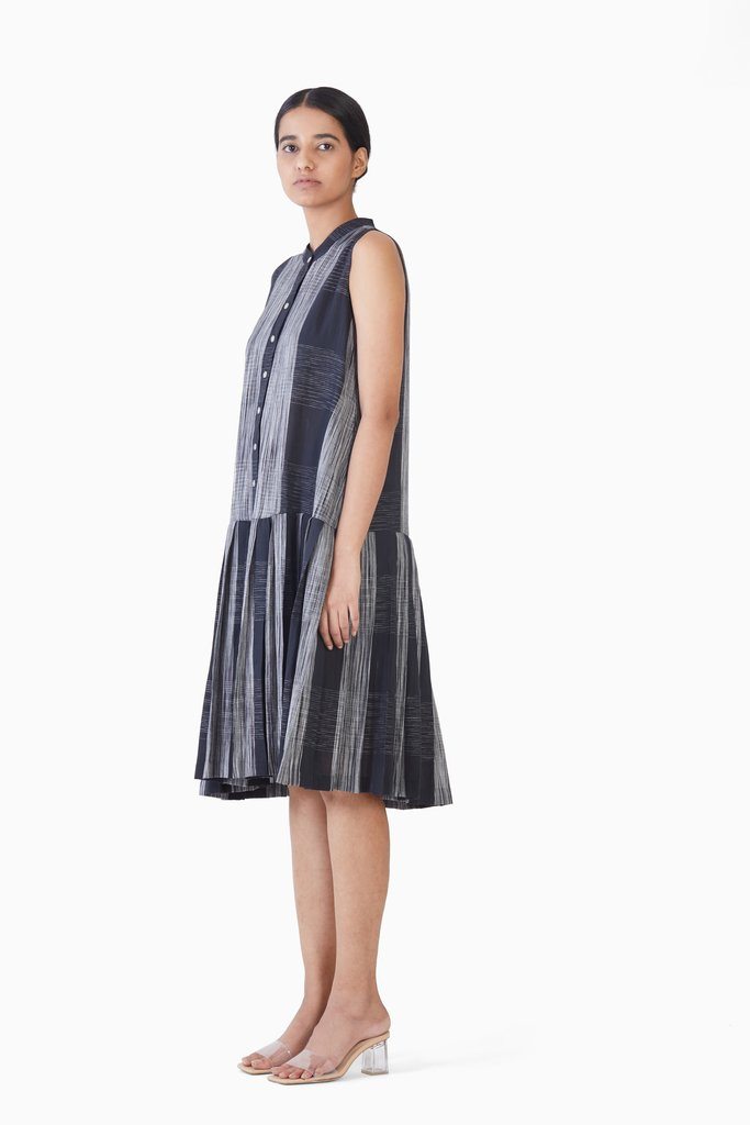 Handwoven Ikat Sleeveless Bottom Pleated Dress
