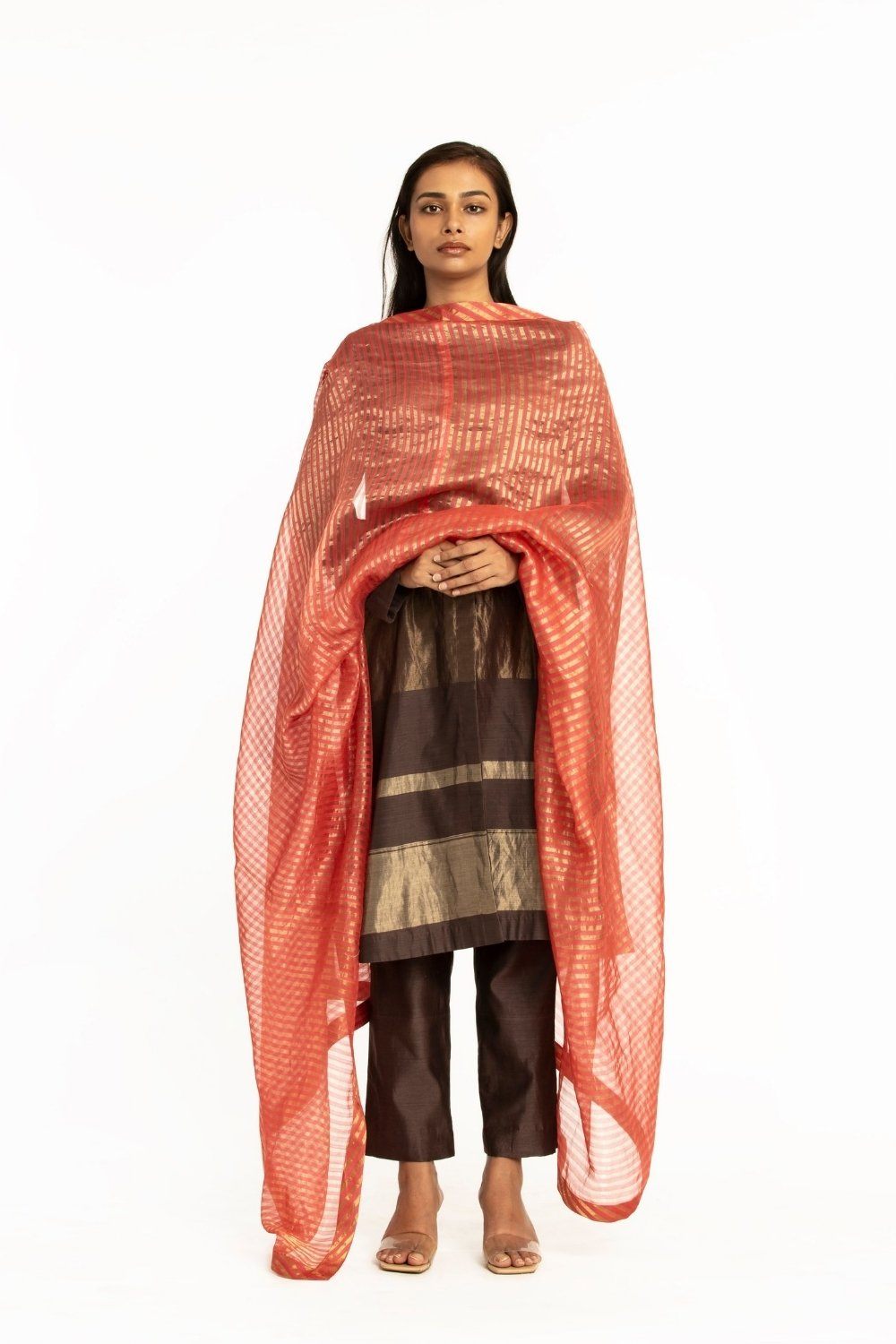 Handwoven in fine Silk,Cotton & Zari on a traditional loom in central India.