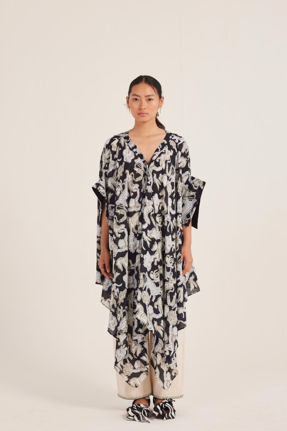 This asymmetrical dress crafted in soft muslin does all the work—just pair it with your favourite trousers and call it a look.