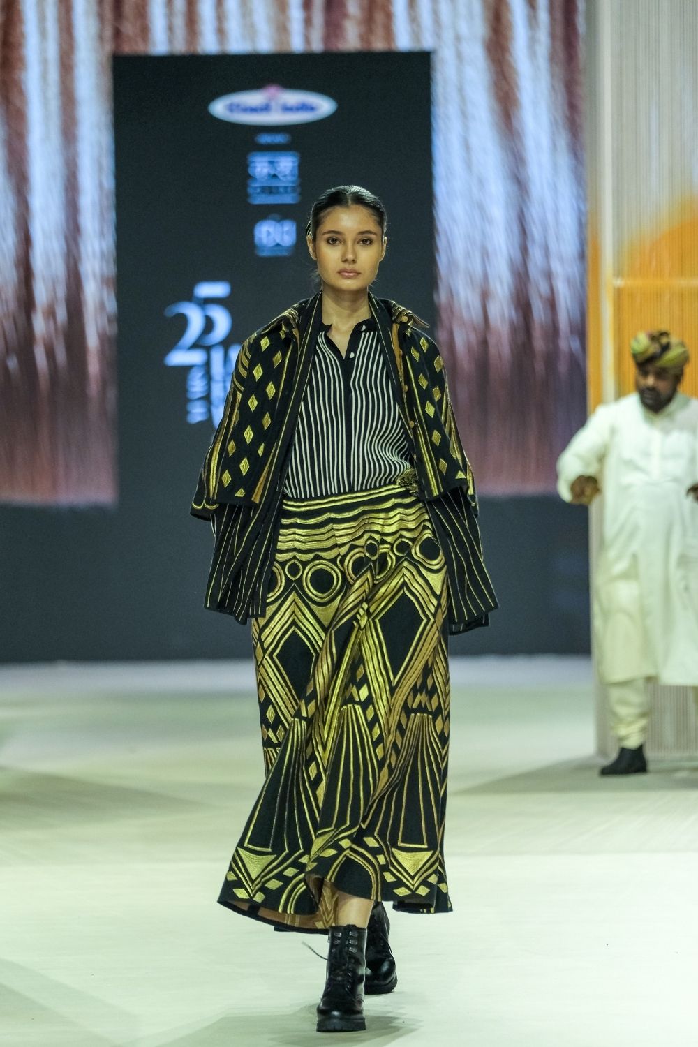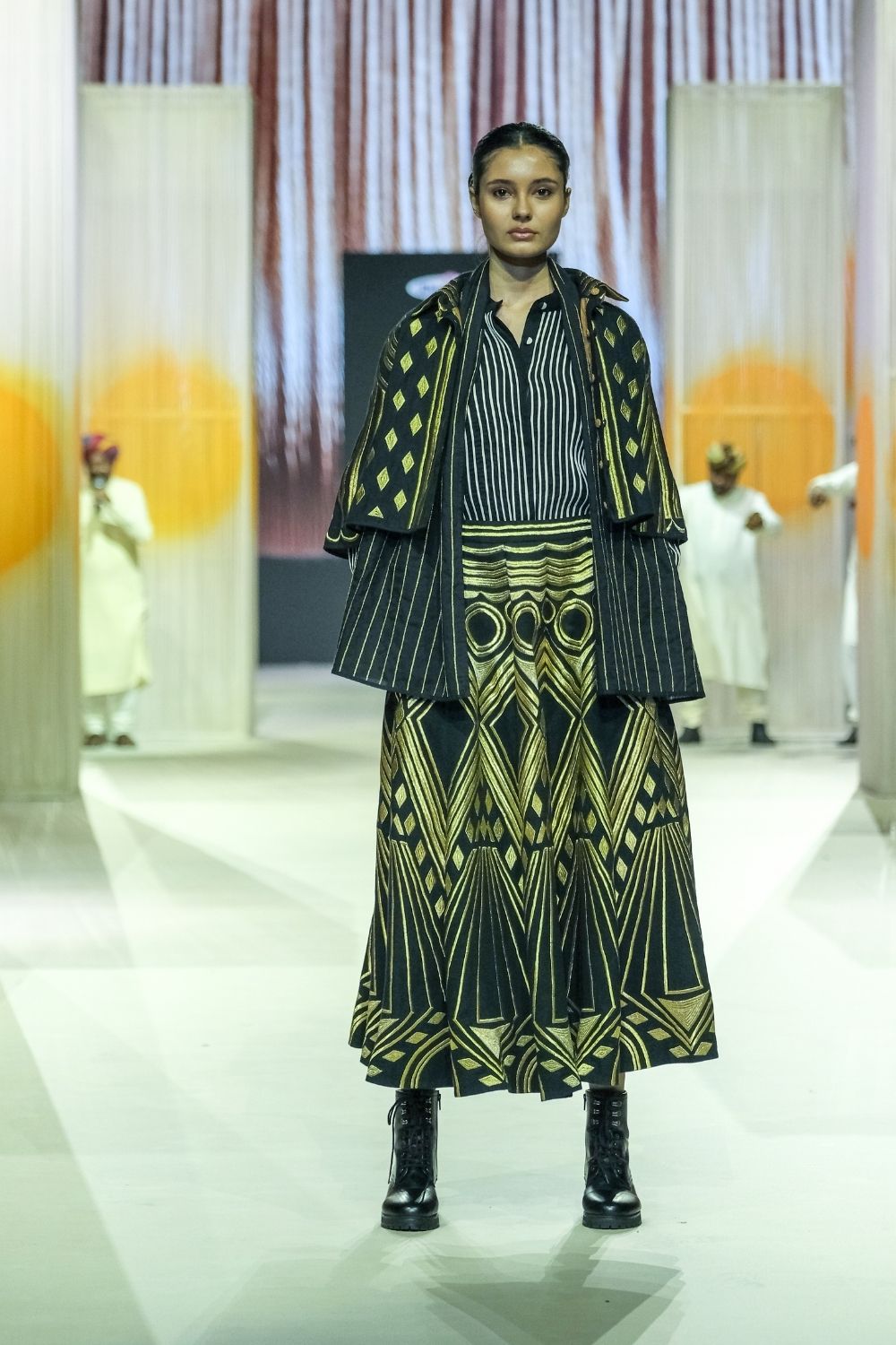 A-line skirt with gold zari embroidery