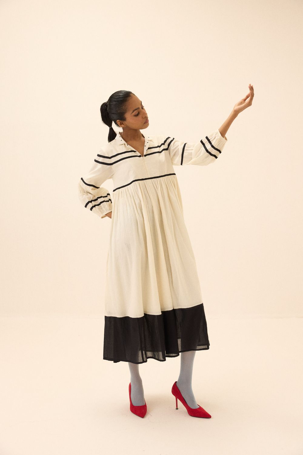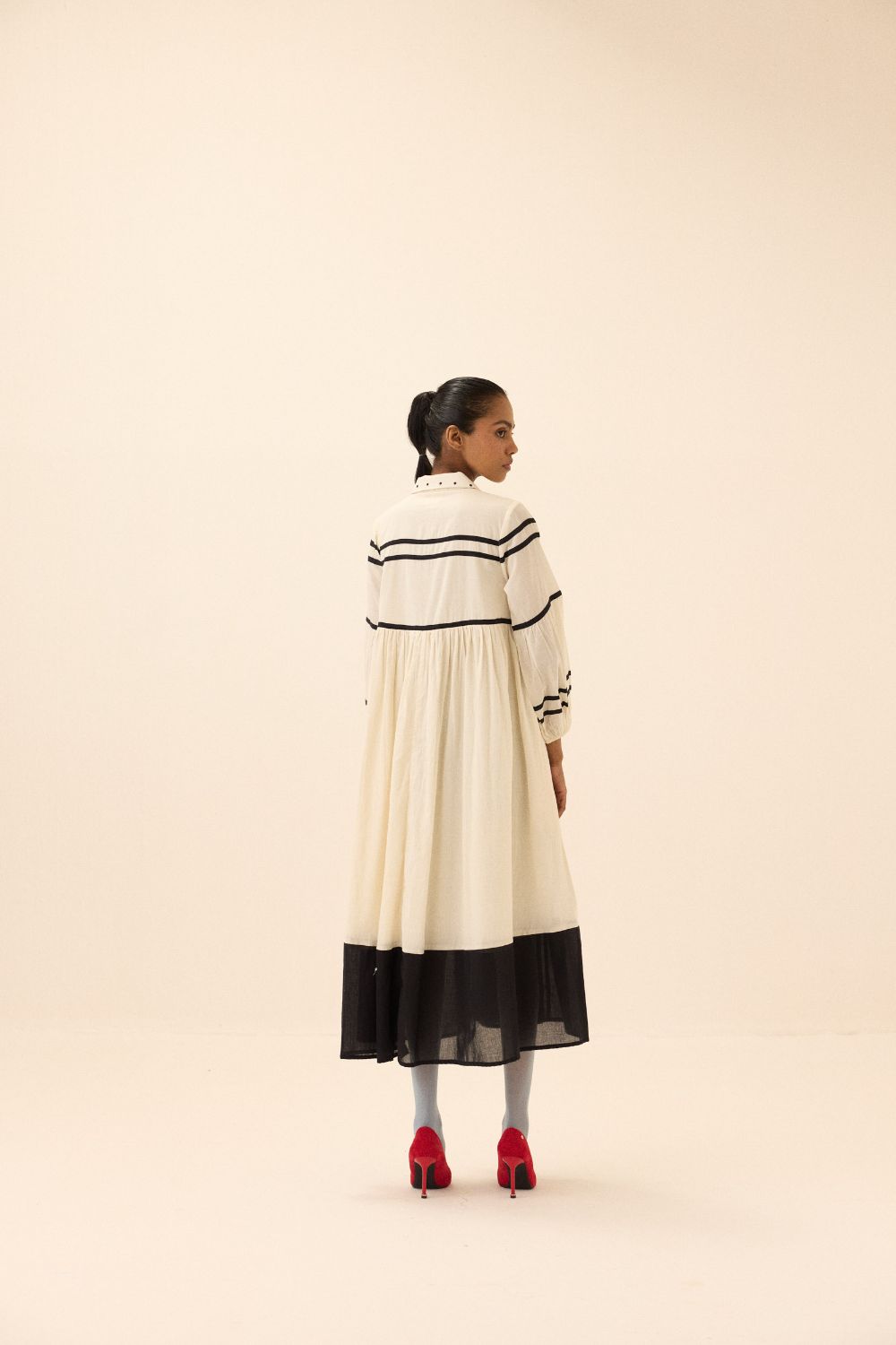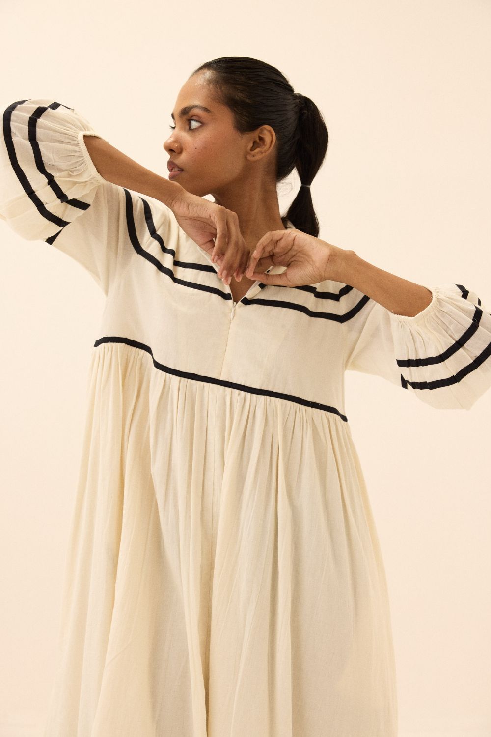 Each piece is grounded in India’s textile heritage yet designed for a woman who moves easily between cultures and climates. The brand’s commitment to homegrown cotton, artisanal processes, and clean, breathable shapes has made these garments not just beautiful, but deeply wearable.