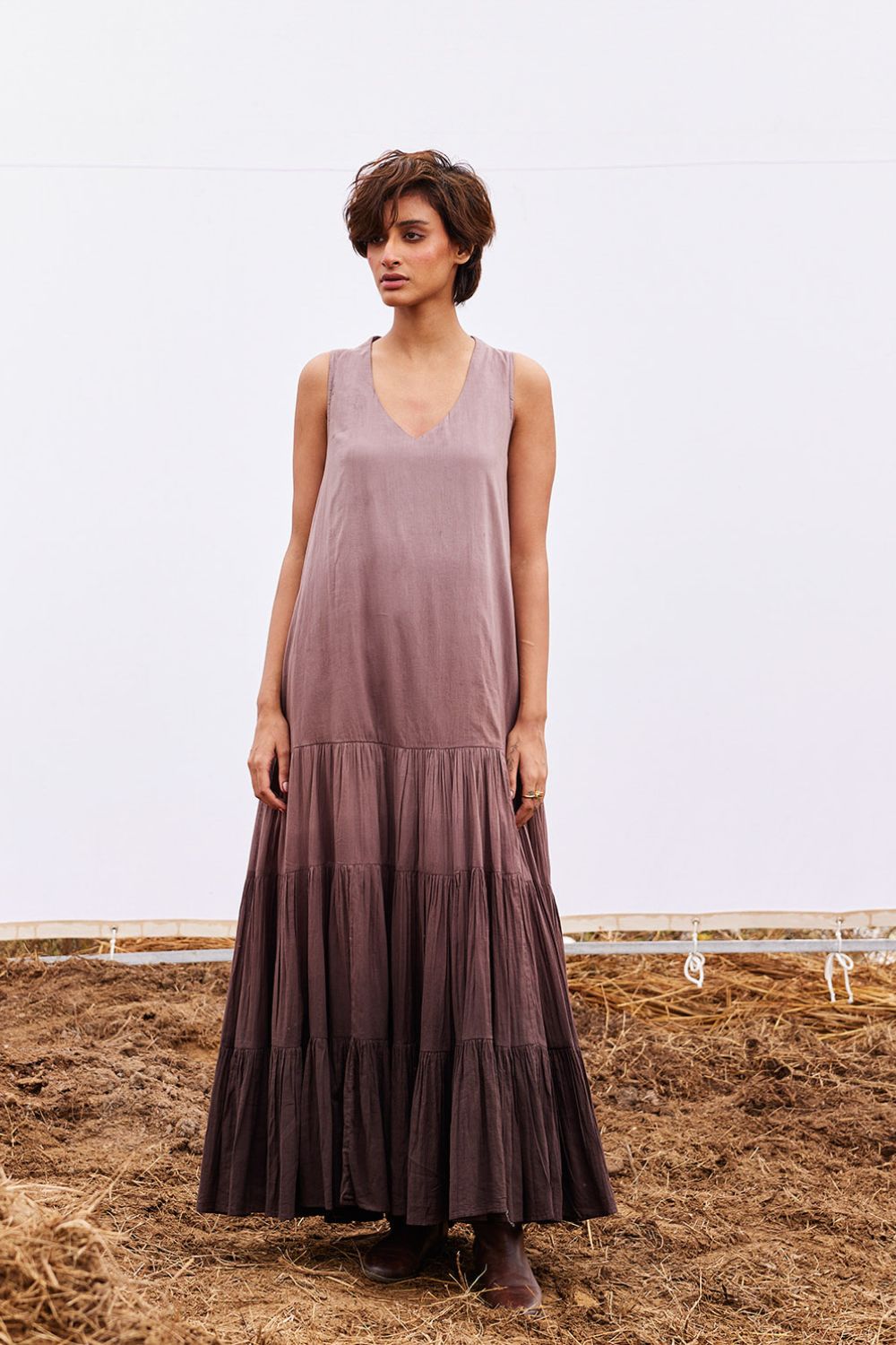 A plum ombre mul tiered dress.