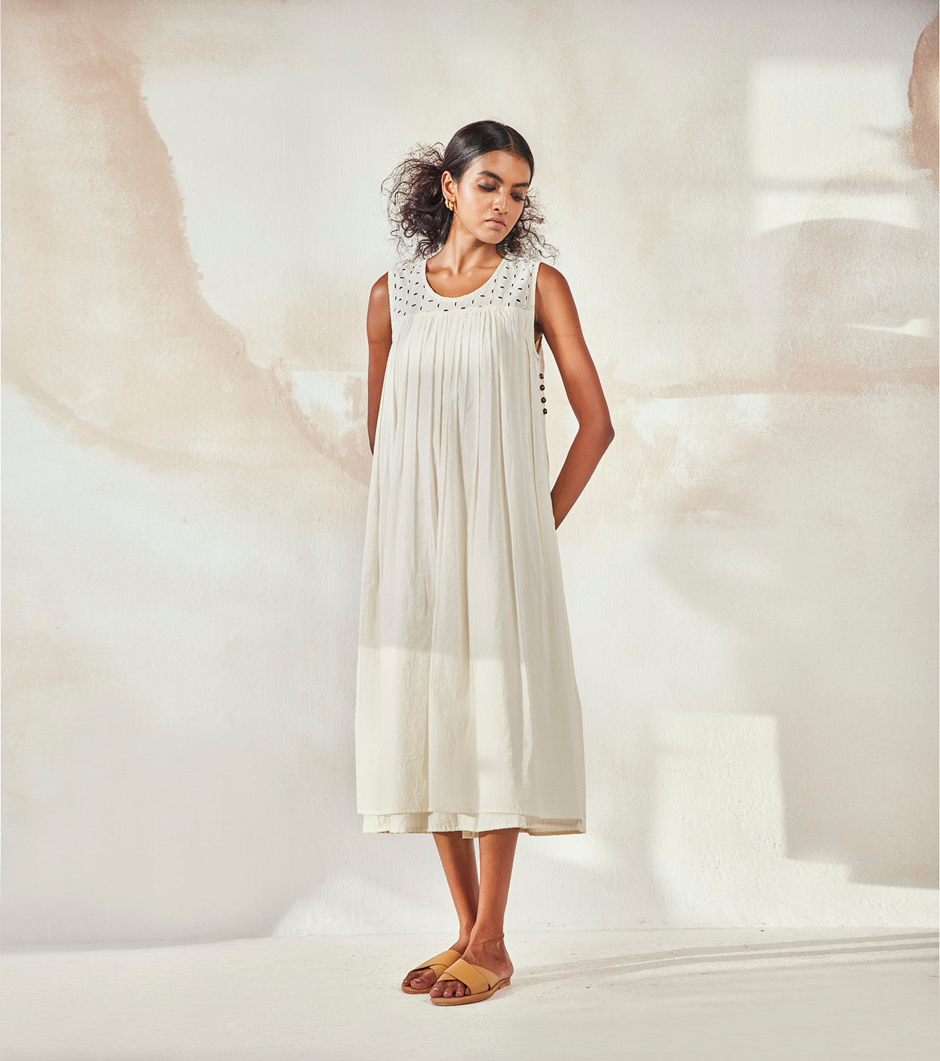 Each piece is grounded in India’s textile heritage yet designed for a woman who moves easily between cultures and climates. The brand’s commitment to homegrown cotton, artisanal processes, and clean, breathable shapes has made these garments not just beautiful, but deeply wearable.