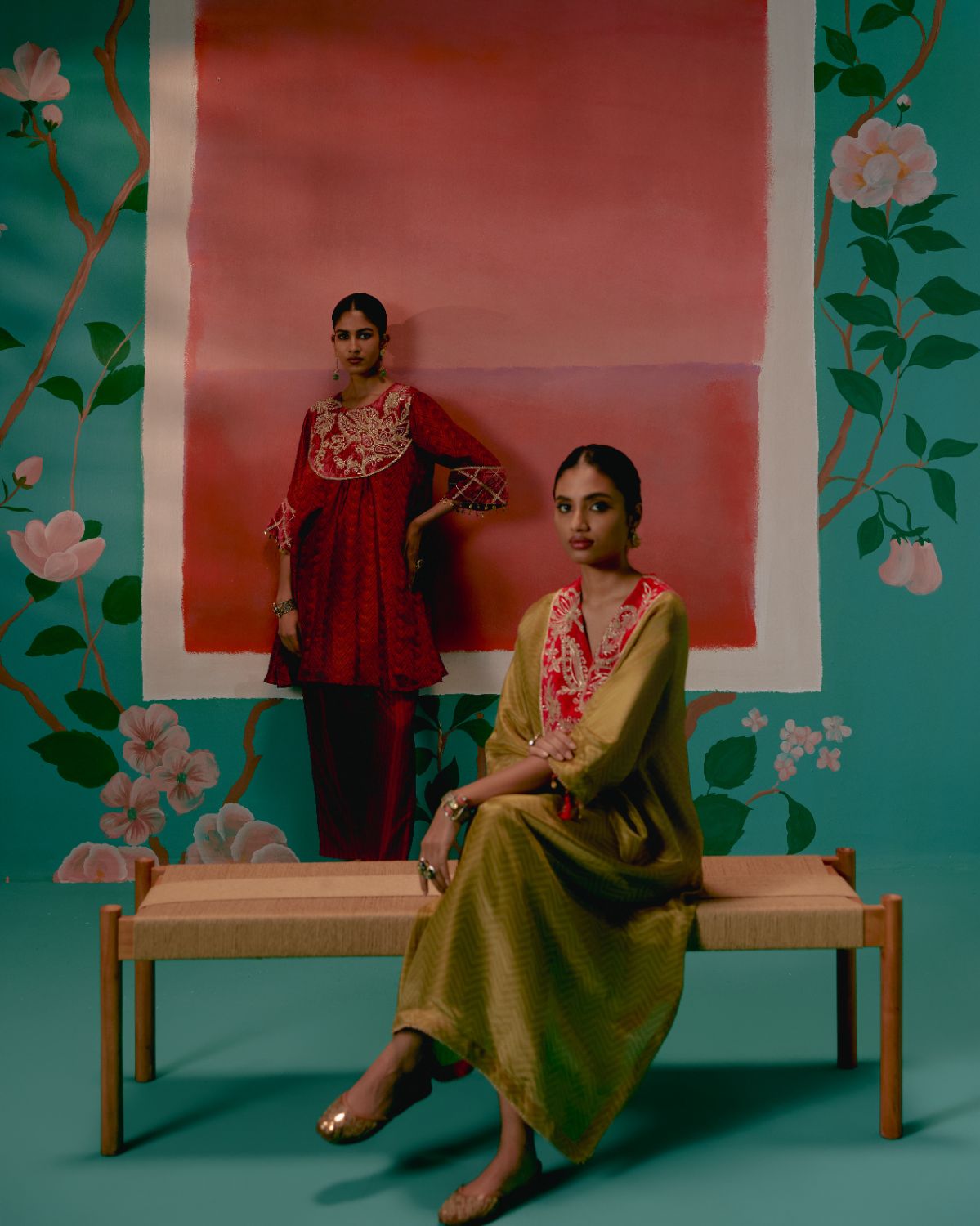 Ethereal and festive, the Mustard Tissue Kaftan Set is designed to bring effortless elegance to celebratory dressing.