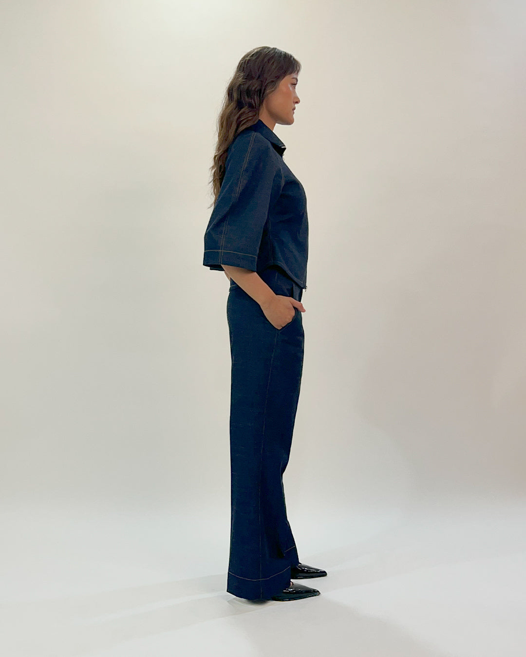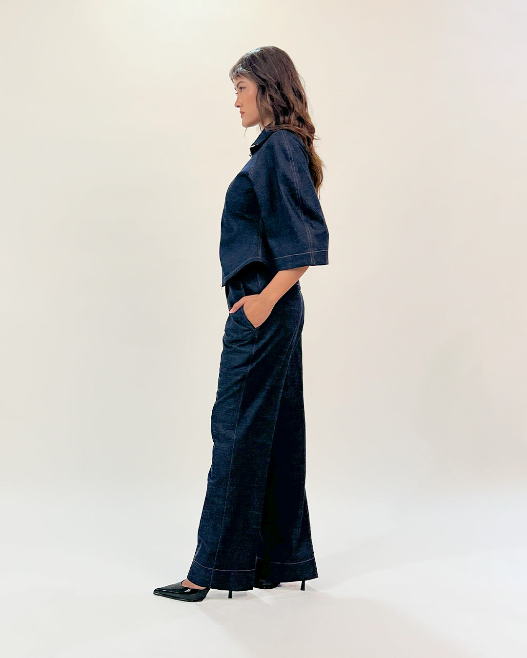 Handcrafted textiles, surplus fabrics, and low-impact materials form the backbone of their collections. Every fabric is chosen with deliberation — traceability, fair labour, and animal welfare are non-negotiables.