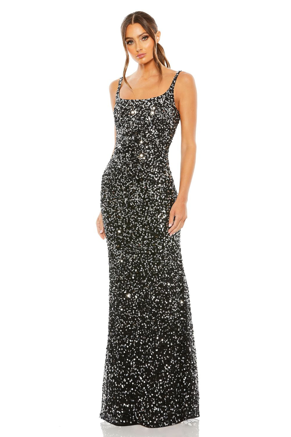 Founded in Chicago by designer Mac Duggal, the label has become a red-carpet language of its own—seen at the Oscars, the Emmys, the Met-adjacent soirées, and the kind of celebrations where the lighting is soft, the music is warm, and the dress needs no introduction. Known for sculpted drapes, sequined textiles, and silhouettes that photograph with cinematic clarity, Mac Duggal designs gowns that balance drama with precision.