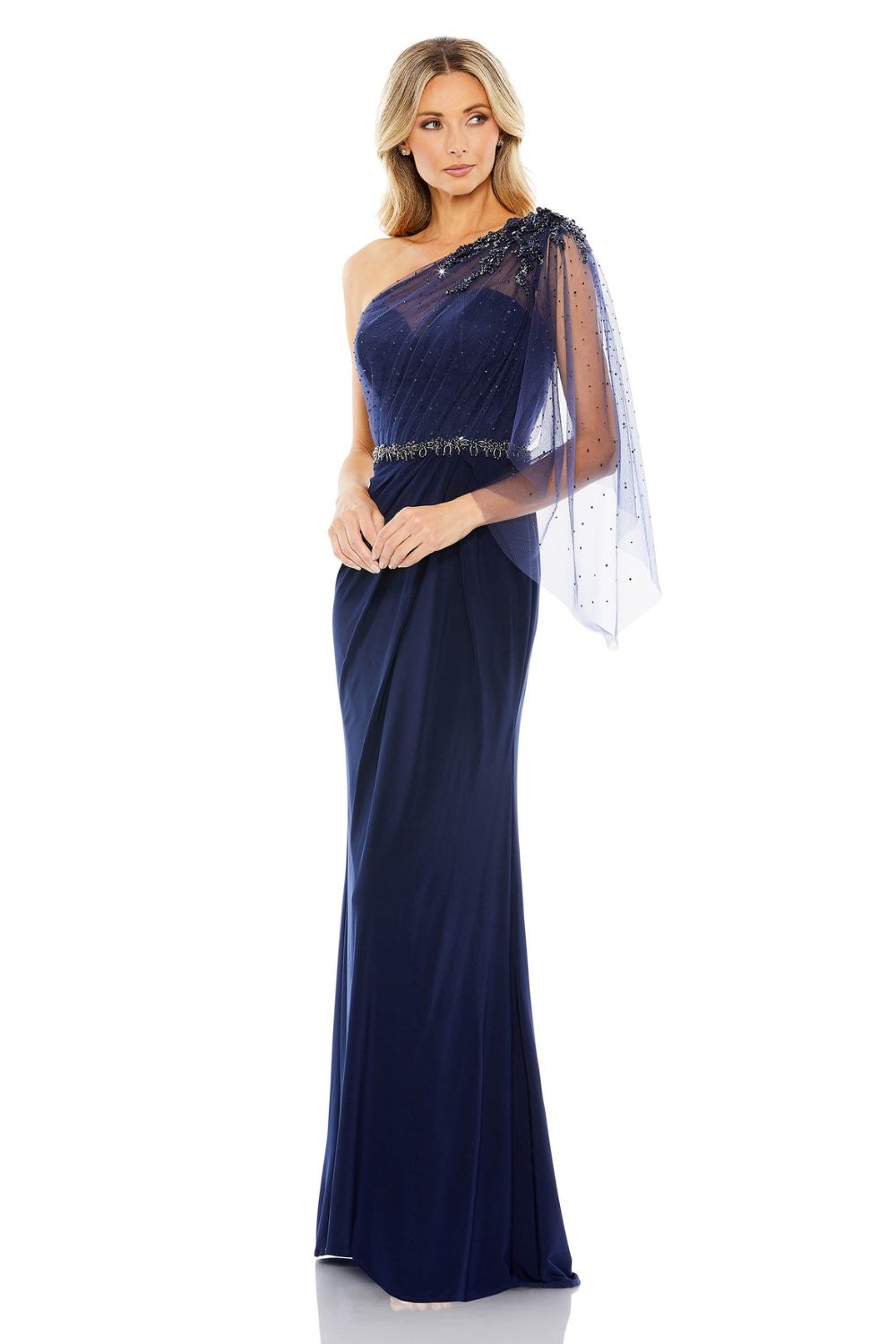 Embellished One Shoulder Draped Gown