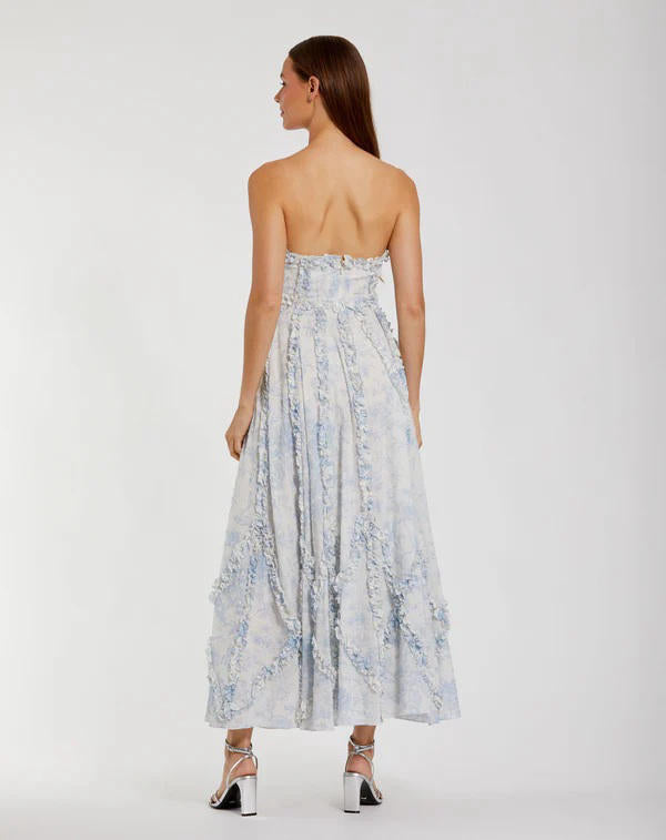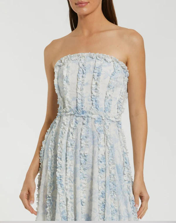 Founded in Chicago by designer Mac Duggal, the label has become a red-carpet language of its own—seen at the Oscars, the Emmys, the Met-adjacent soirées, and the kind of celebrations where the lighting is soft, the music is warm, and the dress needs no introduction. Known for sculpted drapes, sequined textiles, and silhouettes that photograph with cinematic clarity, Mac Duggal designs gowns that balance drama with precision.