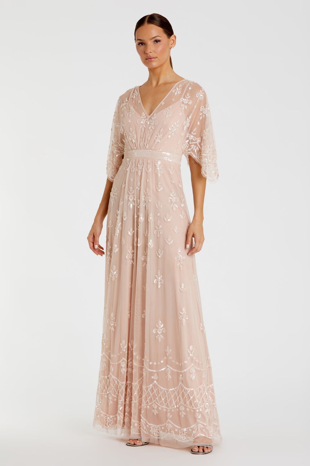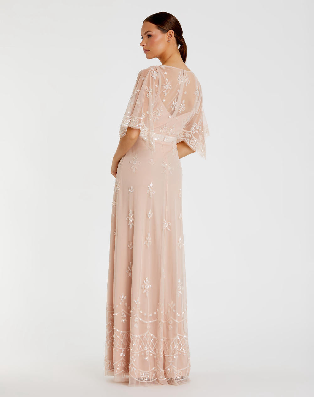 Embelllished Bateau Cap Sleeve Column Gown