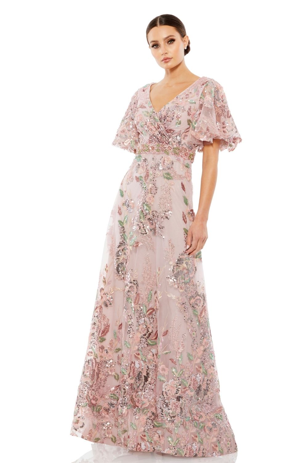 Founded in Chicago by designer Mac Duggal, the label has become a red-carpet language of its own—seen at the Oscars, the Emmys, the Met-adjacent soirées, and the kind of celebrations where the lighting is soft, the music is warm, and the dress needs no introduction. Known for sculpted drapes, sequined textiles, and silhouettes that photograph with cinematic clarity, Mac Duggal designs gowns that balance drama with precision.