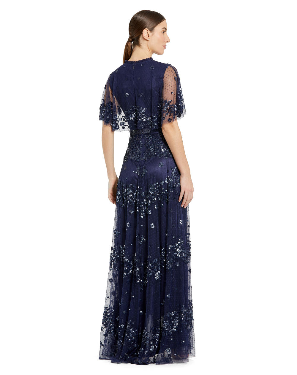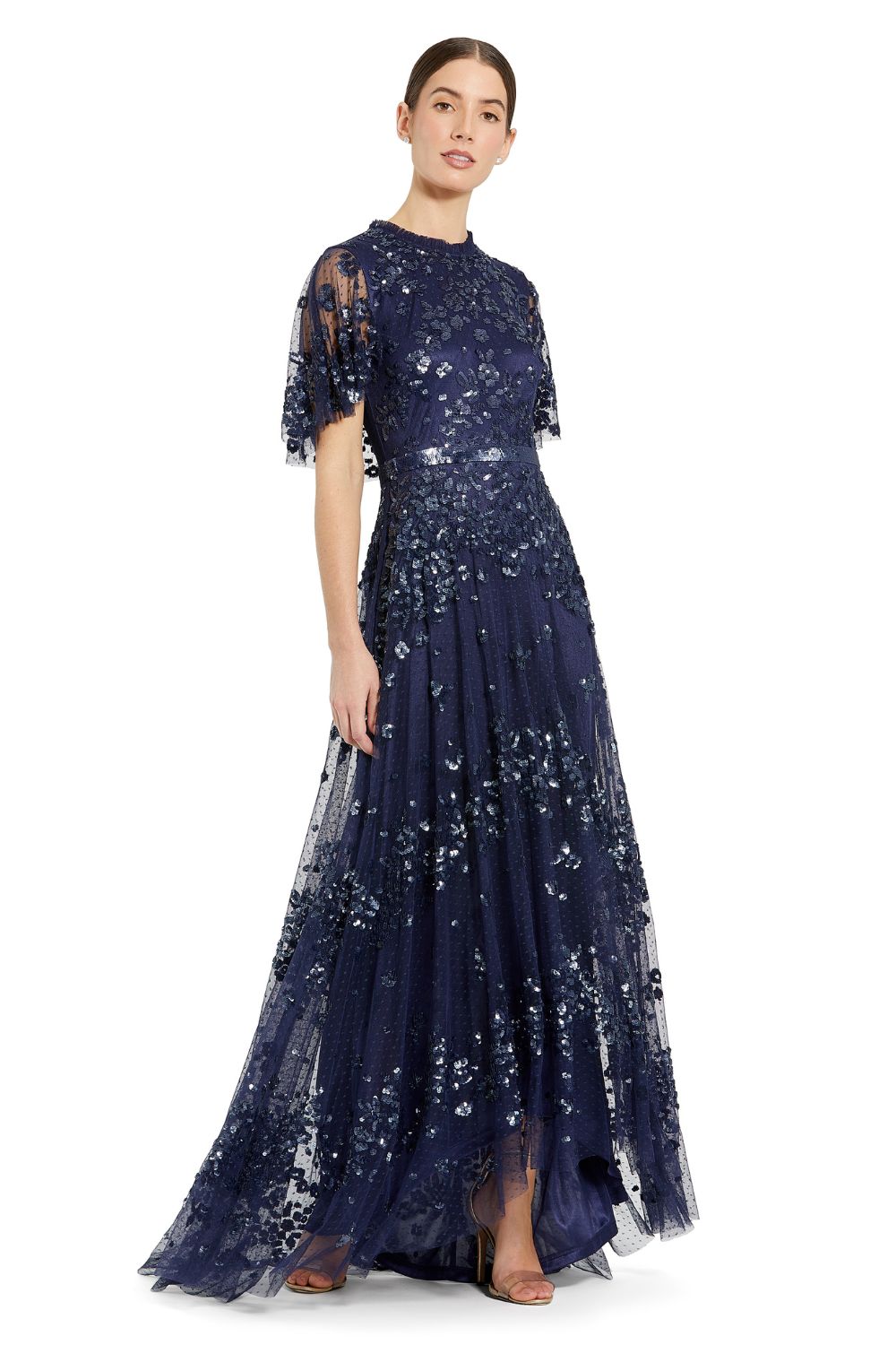 Founded in Chicago by designer Mac Duggal, the label has become a red-carpet language of its own—seen at the Oscars, the Emmys, the Met-adjacent soirées, and the kind of celebrations where the lighting is soft, the music is warm, and the dress needs no introduction. Known for sculpted drapes, sequined textiles, and silhouettes that photograph with cinematic clarity, Mac Duggal designs gowns that balance drama with precision.