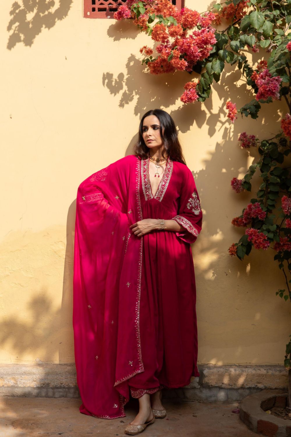 Pant - It is paired with matching velvet silk pants with cut dana embroidery