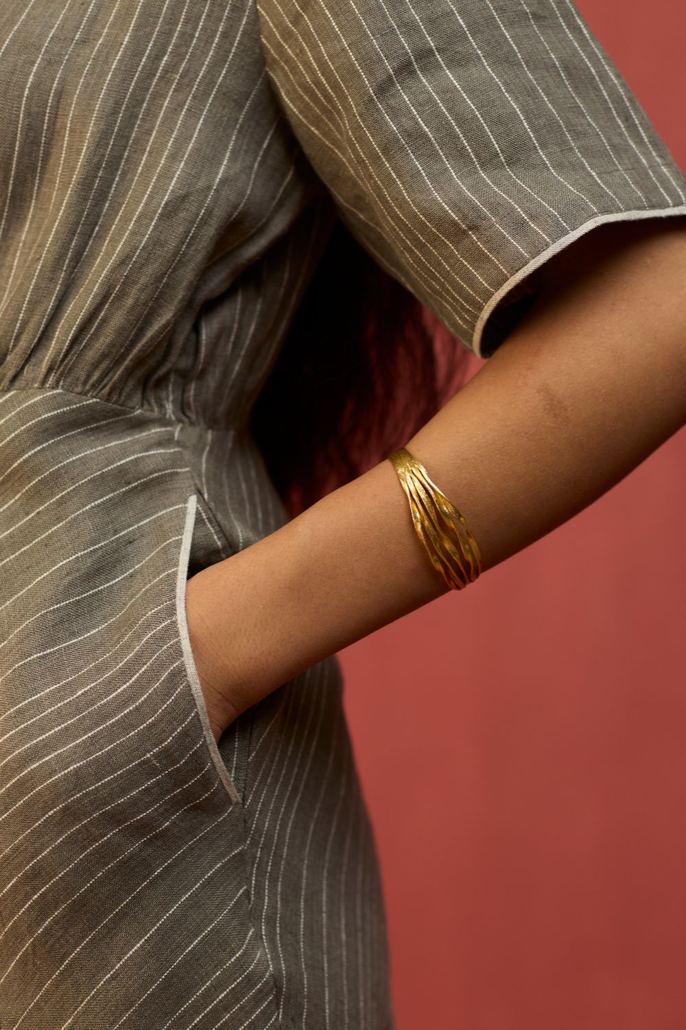 Their signature linens soften beautifully with time, eventually returning to the earth. They work with eri (ahimsa) silk, celebrated for its strength and gentle texture, and craft thoughtful blends of viscose, cotton, silk, and linen for pieces designed to last. Yarn-dyed techniques minimise chemical use and create the subtle, heathered tones that have become a quiet Manan signature.