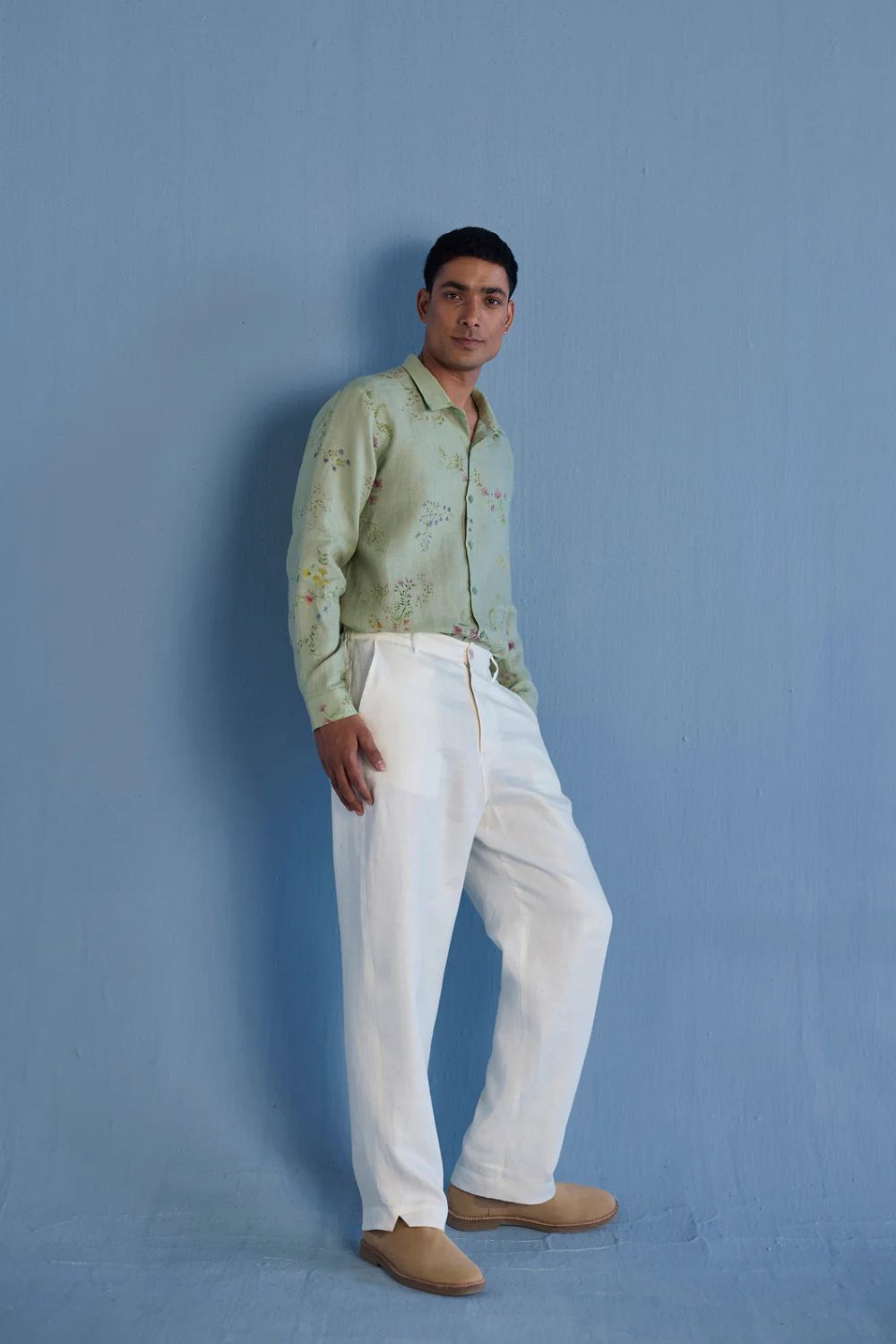Classic linen pants in a beautiful pure linen in a twill weave with a zipper, hook opening and elasticated back waistband and pockets in our classic yarn-dyed linen with a v-cut detail at the hem.